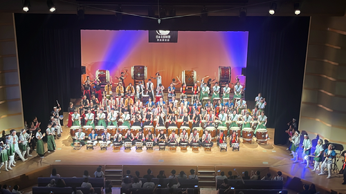 最後に出演団体がすべて出演し、100人で「宴闌」を演奏しました。様々な年代の人たちとともに演奏し、会場一体となって盛り上がることができました。