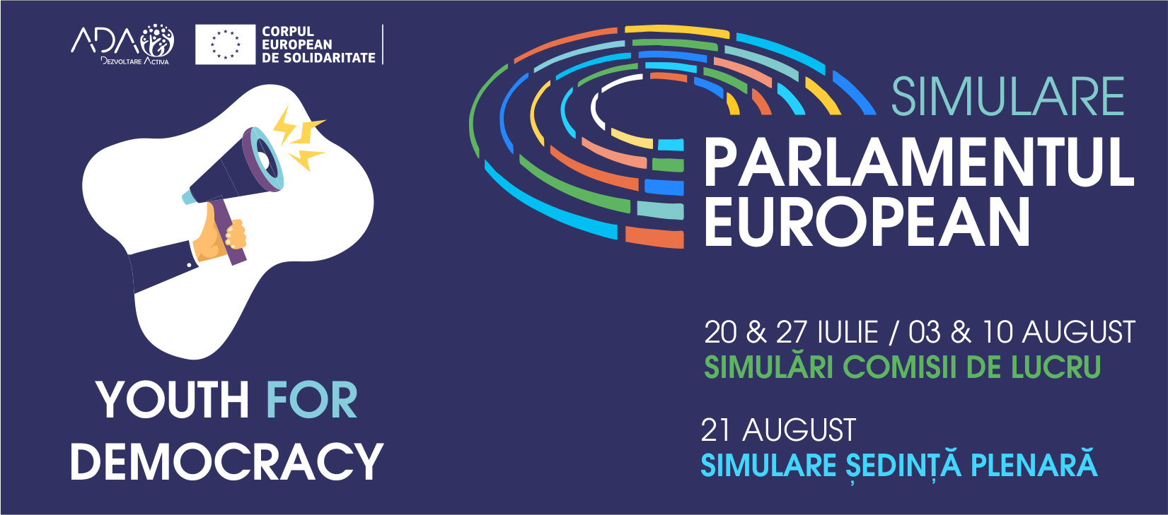 În perioada 20 iulie – 21 august 2019 tinerii curioși de modul de funcționare și rolul instituțiilor Uniunii Europene, mai ales al Parlamentului European, au avut șansa de a participa la o serie de simulări de Parlament European organizate de Asociația pentru Dezvoltare Activă ADA.