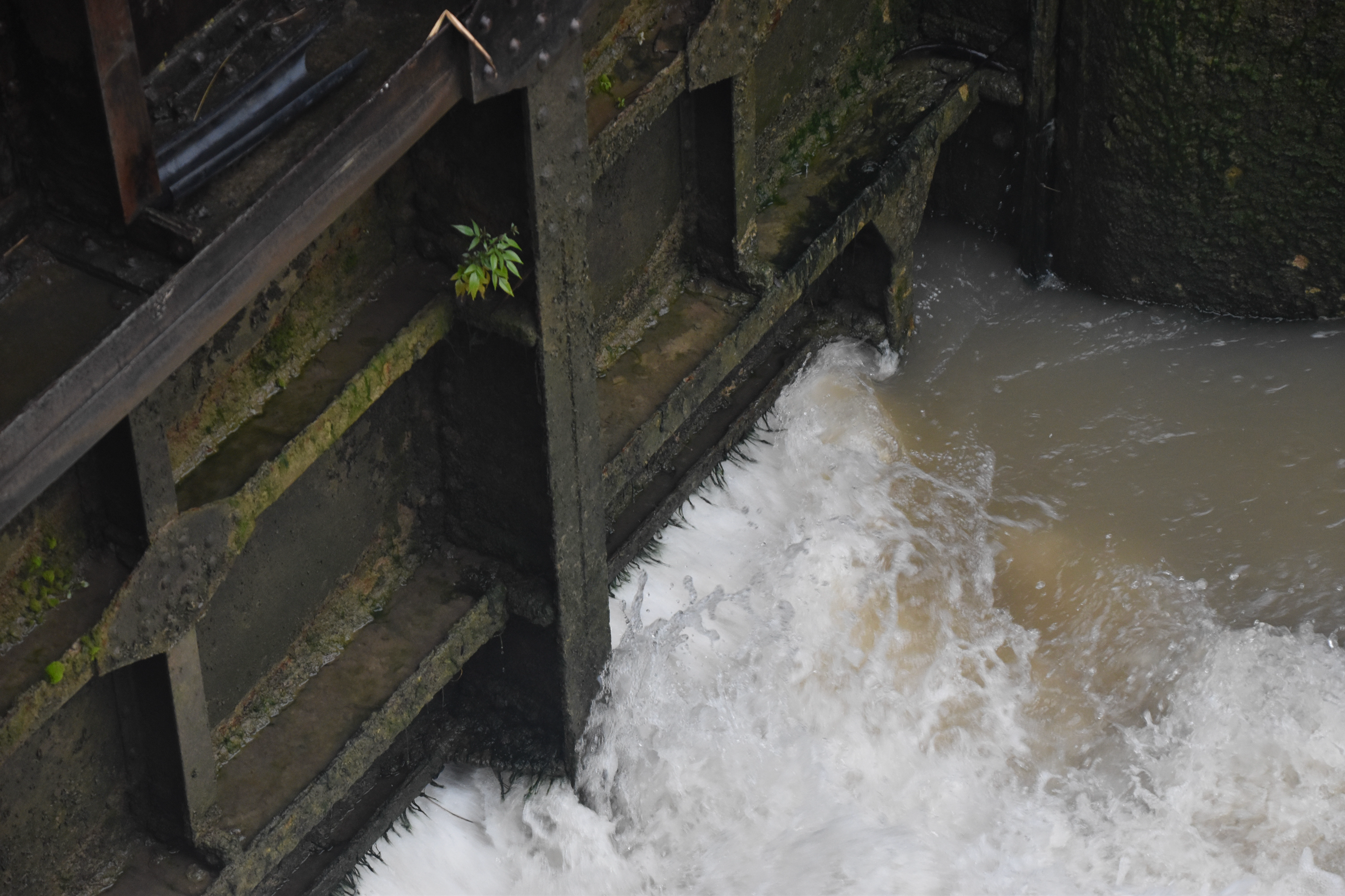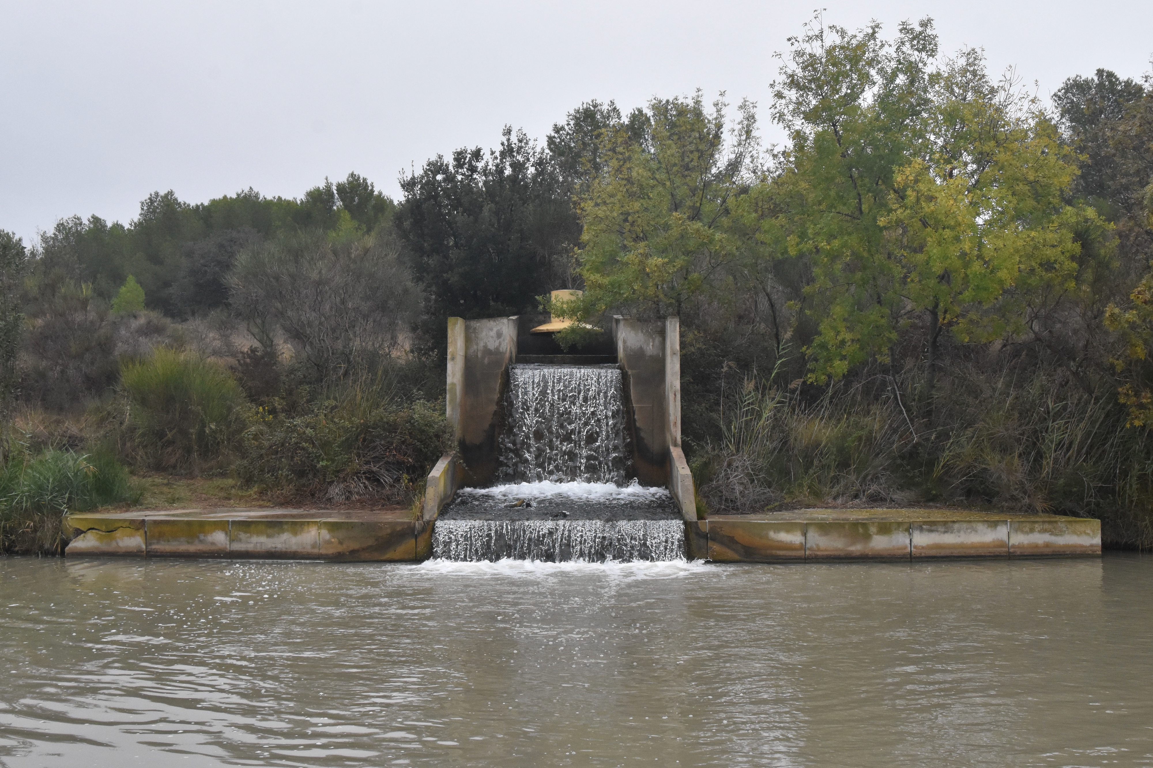 L’épanchoir en basalte de Pietat, un des nombreux qui jalonnent le canal du Midi, servant à l’évacuation du trop-plein du canal.