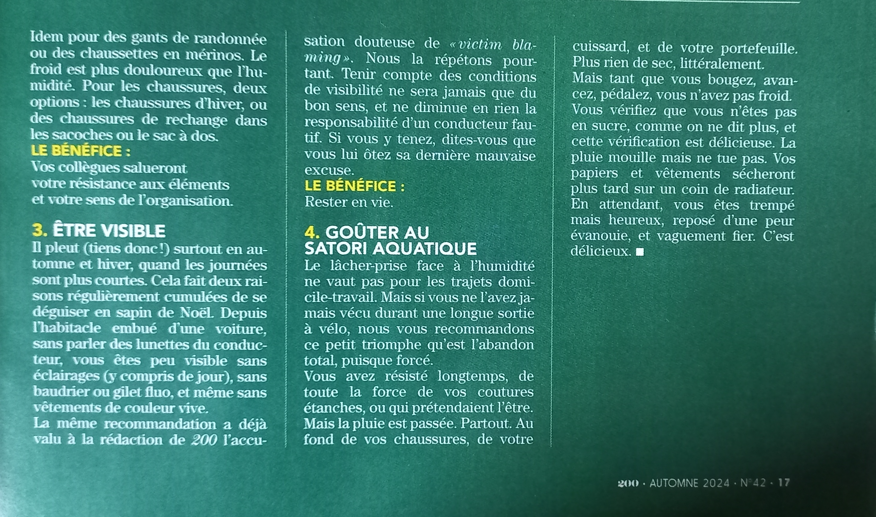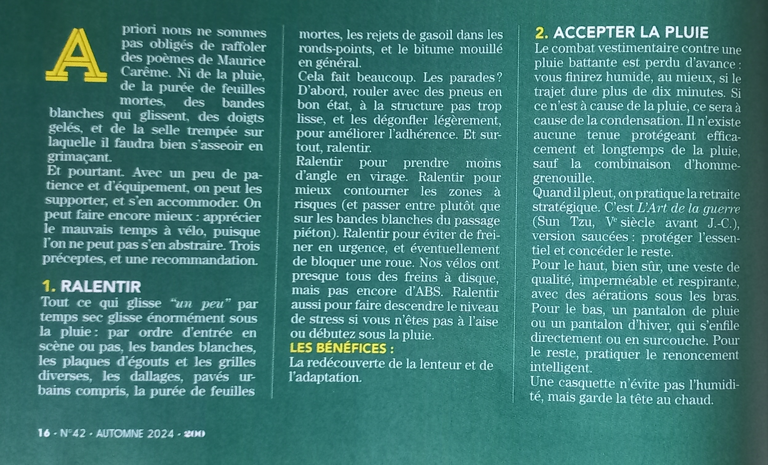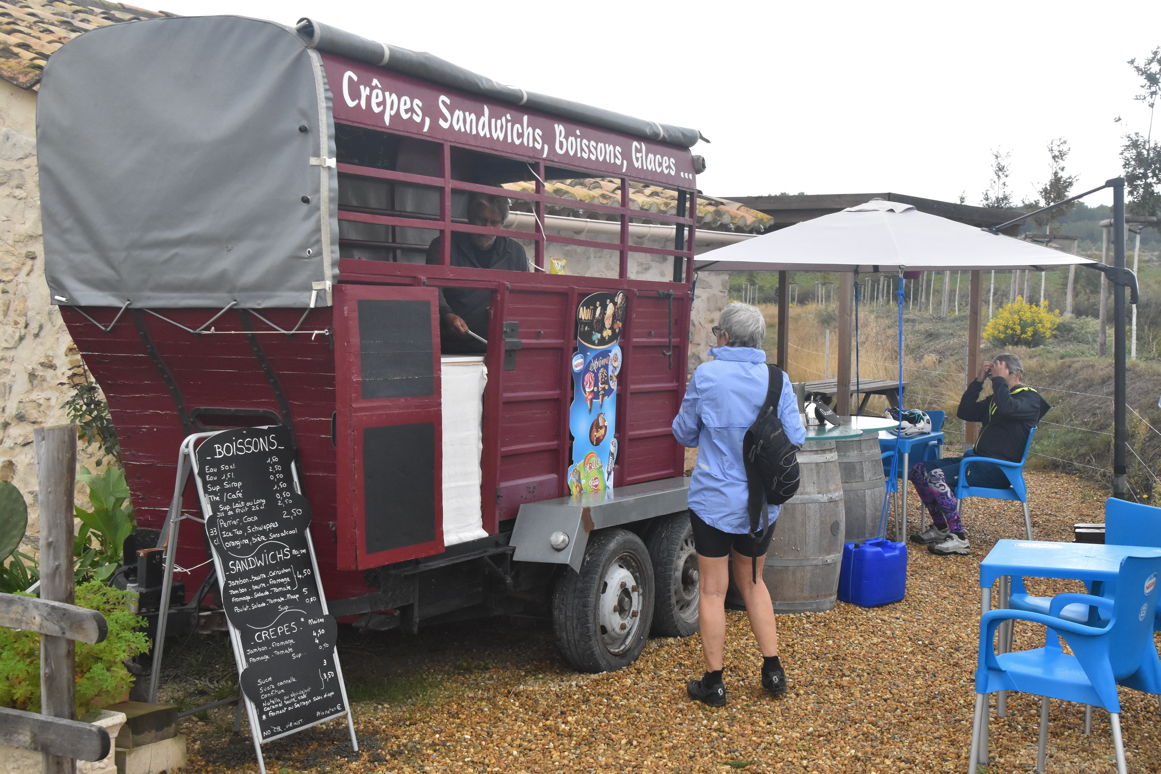 Ploc ploc ploc et hop, la tenue anti-pluie est de sortie… pantalon, sur-chaussures pour certaine, veste, capuchon, gants et casquette pour les lunettes. Il ne fait pas froid et sous toutes ces couches il pleut aussi de l’intérieur !! Ce sera ainsi toute la journée, quelques accalmies engendrant un ballet en plusieurs tableaux déshabillage-habillage.