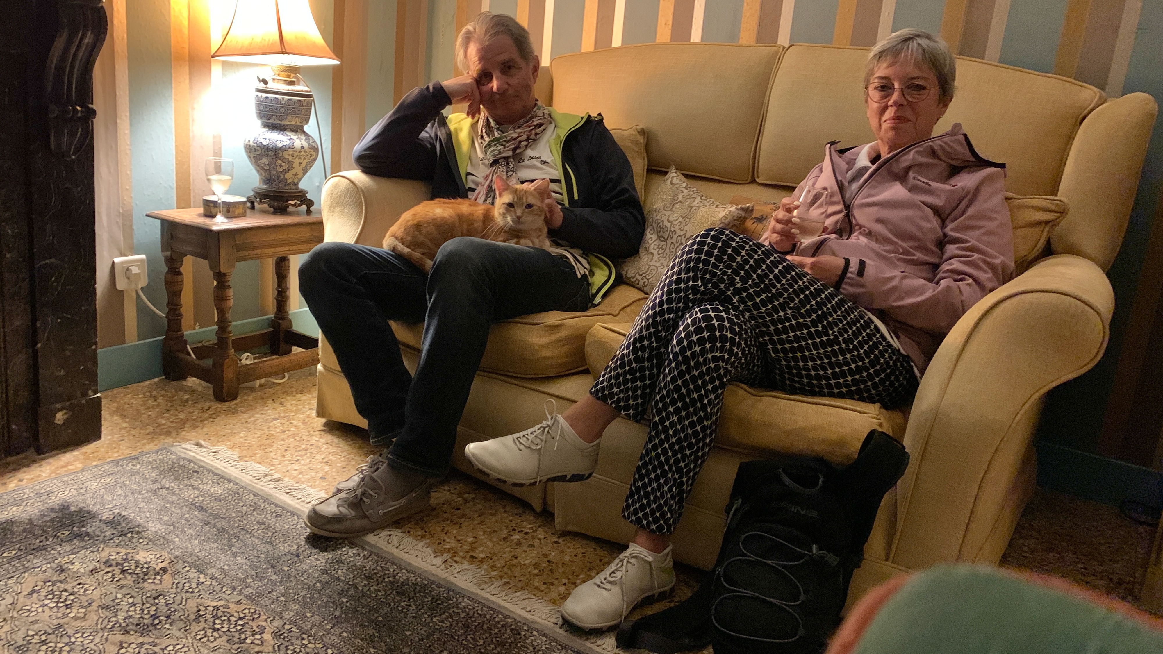 Les marins d’eau douce semblent bien amortis quand vient le soir. Kitten, l’un des deux chats de la maison prend ses aises. Captain Bob est parti chasser.