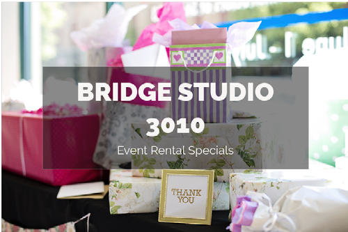 Bridge Studio 3010 with it’s unique charm, rustic style, open space, and neutral background allows you to create your own pallet, bring your own decor to show off your creative side, host your special event and make you everlasting memories. Our rental hall is 1400 Square foot of open space, includes available heating or cooling, ground level private parking, private front door entrance, a private dressing room/bathroom facility and ample electrical outlets throughout the building, including exterior lights and outlets. For your convenience we also have available, 60 white event chairs, 8 tables 2 1/2’ x 6‘ folding tables and three large trash cans, our bundles already include the cost of these items. (Maximum capacity is 60 guest.)