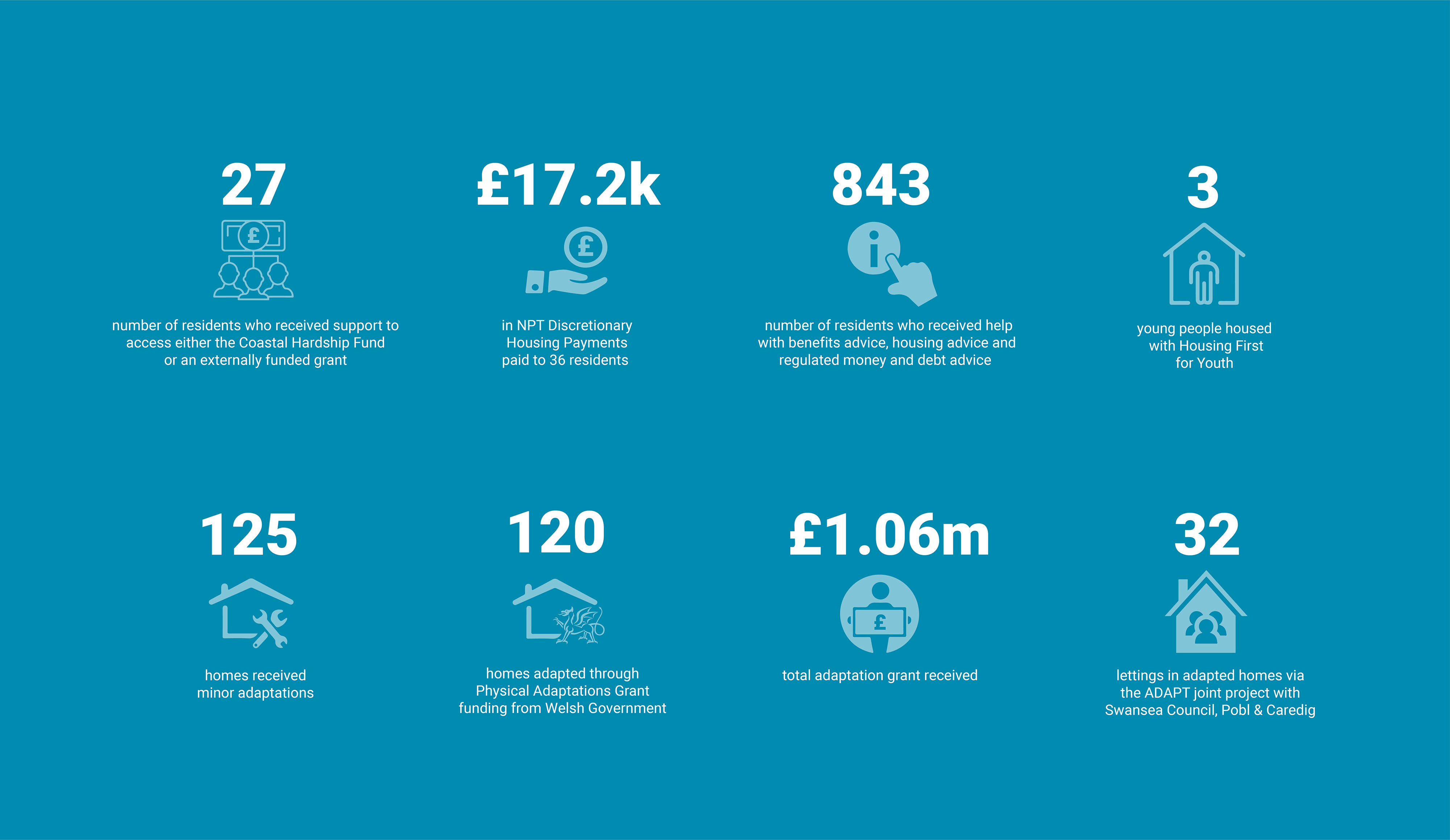 Building on increased tenancy support activity put in place in the early days of the pandemic, Coastal continued to provide advice, support and signposting to residents over the past year. We continued to share resources on our website and social media platforms as a supplement to in-person support by our housing, customer service, home adaptations and extra-care teams, who have provided personalised advice and signposting based on individual circumstances.