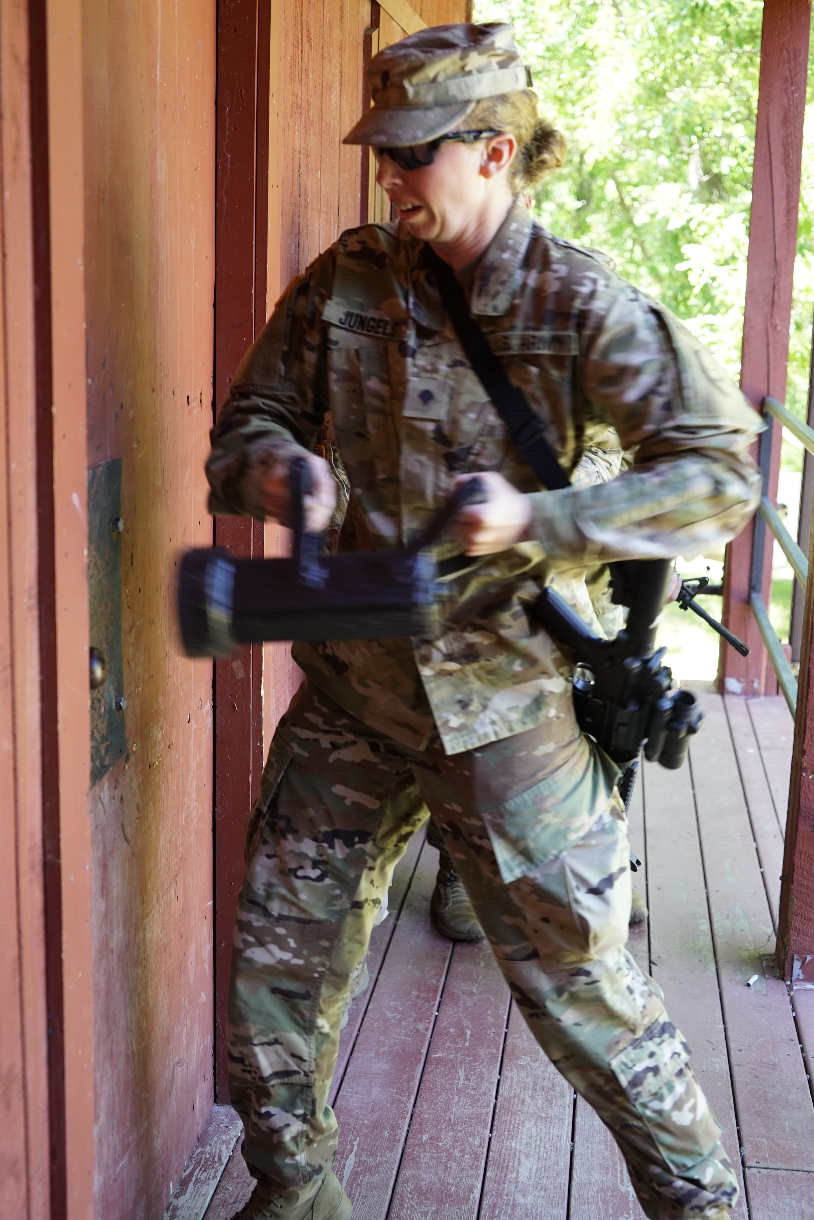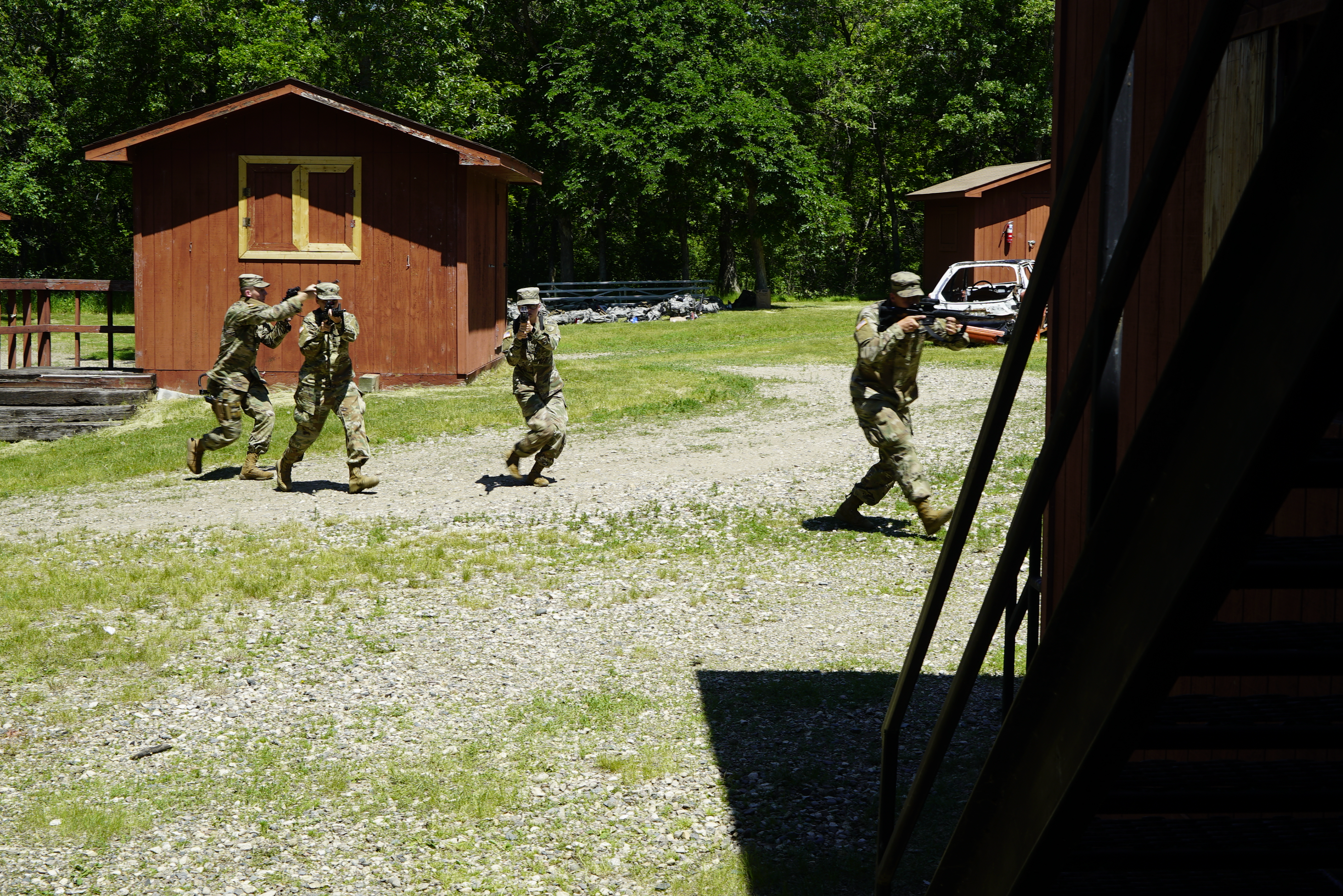 The 191st Military Police Company held its annual training at Camp Grafton Training Center from June 8 - 16. The training included Military Operations on Urbanized Terrain (MOUT) training as well as civil unrest training, vehicle recovery, weapons qualification, convoy and area security training. (U.S. National Guard story and photos by Sgt. 1st Class Charles Highland, N.D. National Guard Public Affairs)
