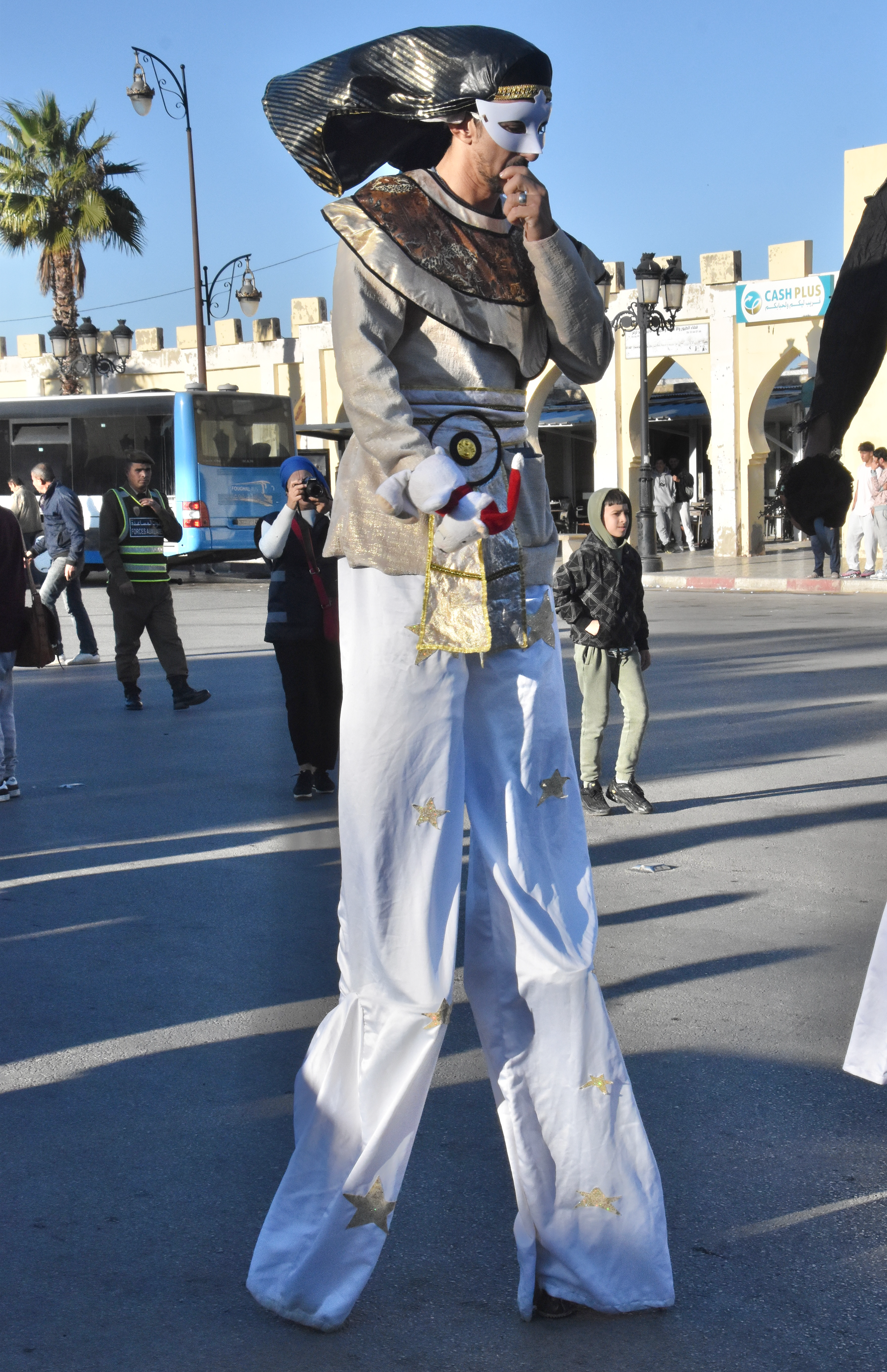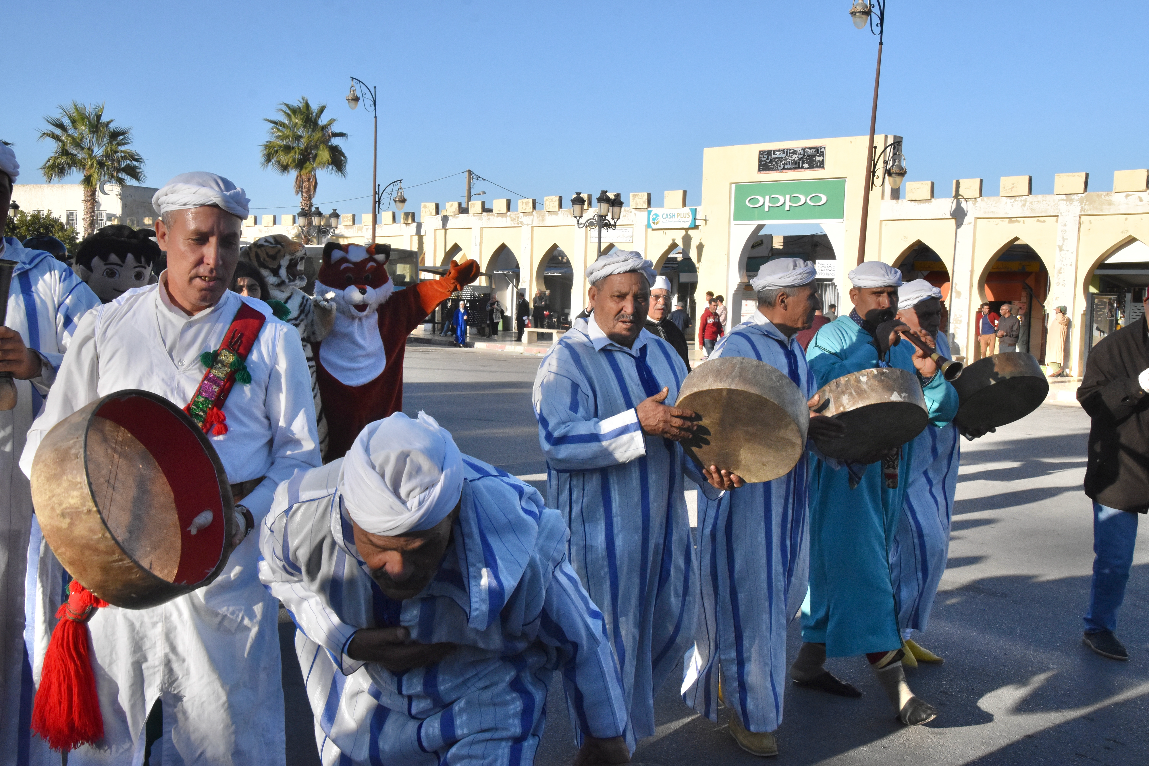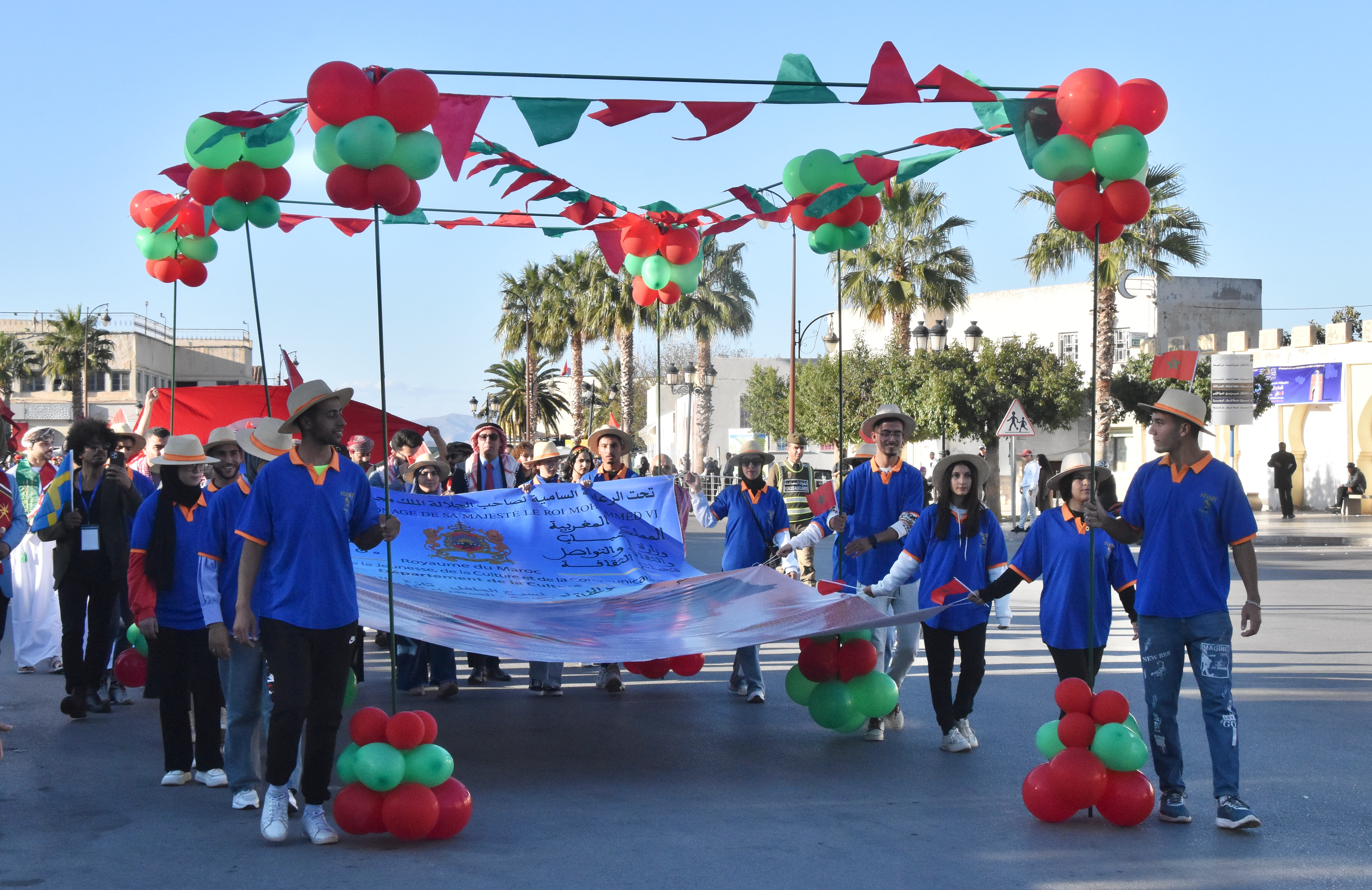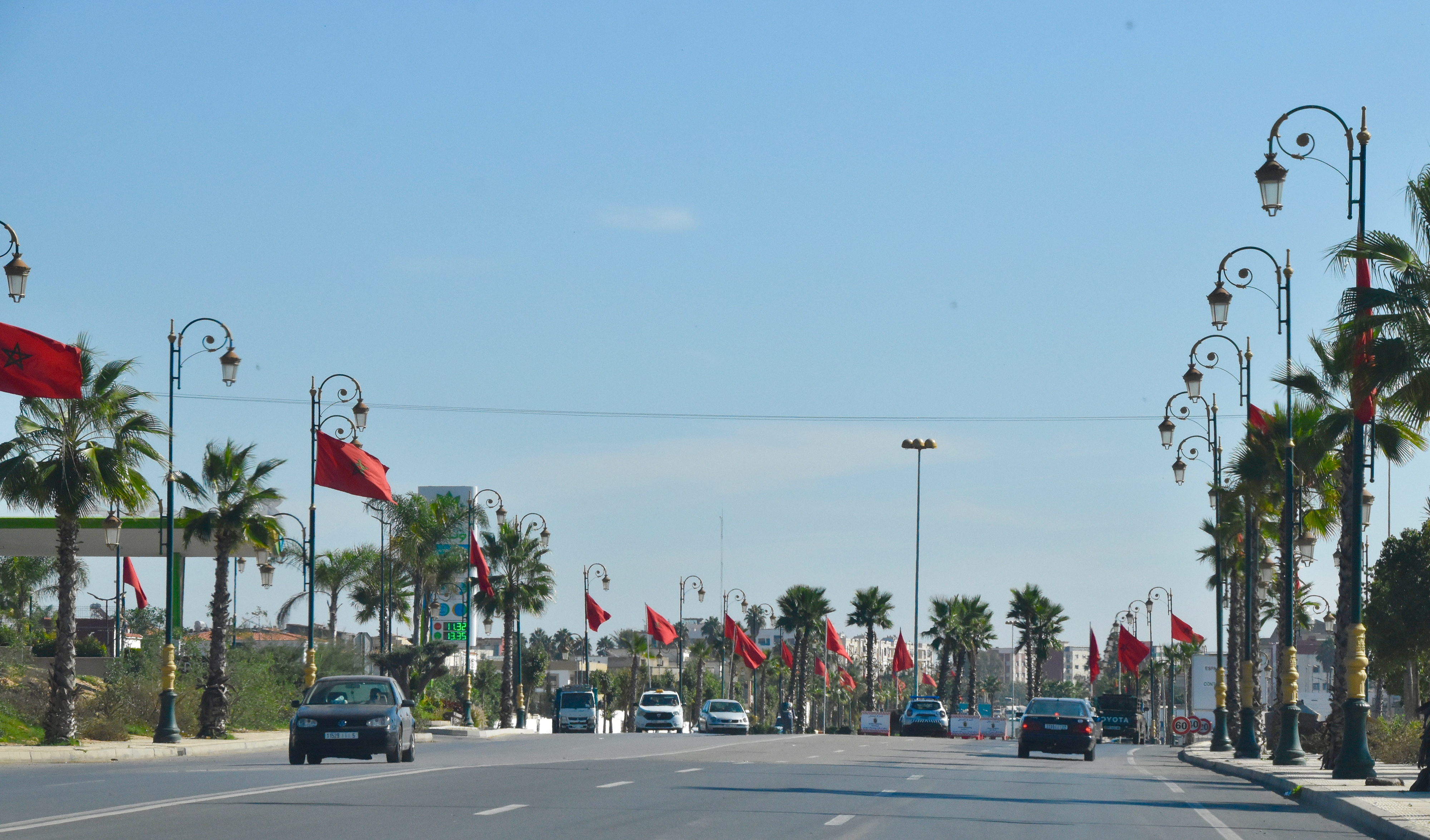 Les rues pavoisées pour la commémoration de la Marche verte du 6 novembre 1975, avec les non-moins célèbres lampadaires marocains, différents dans chaque ville.