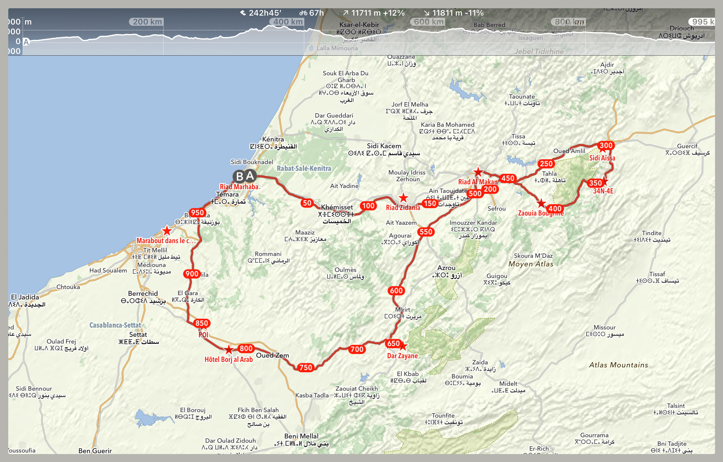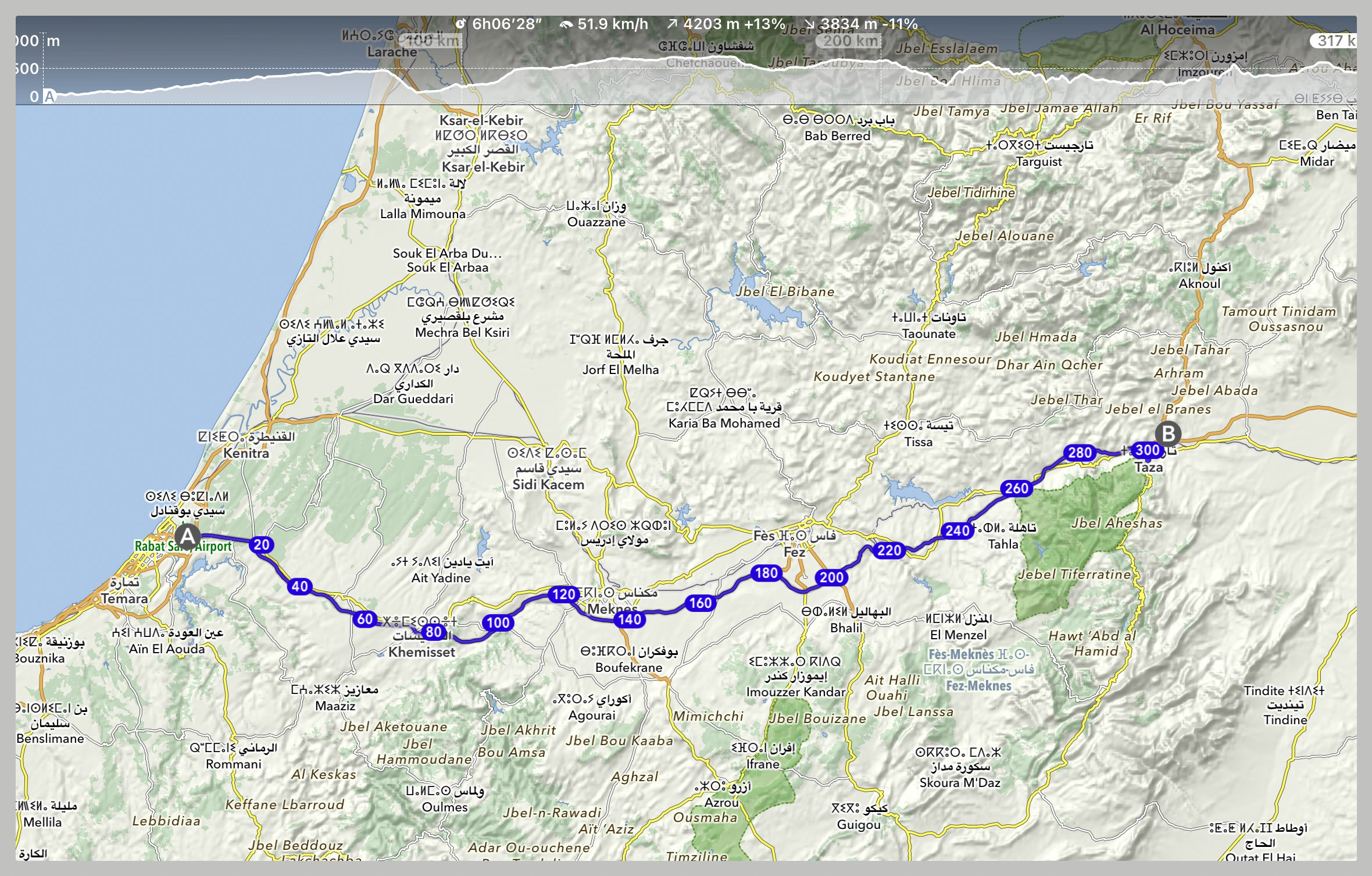 Le parcours du jour, Rabat > Taza, 317 km.