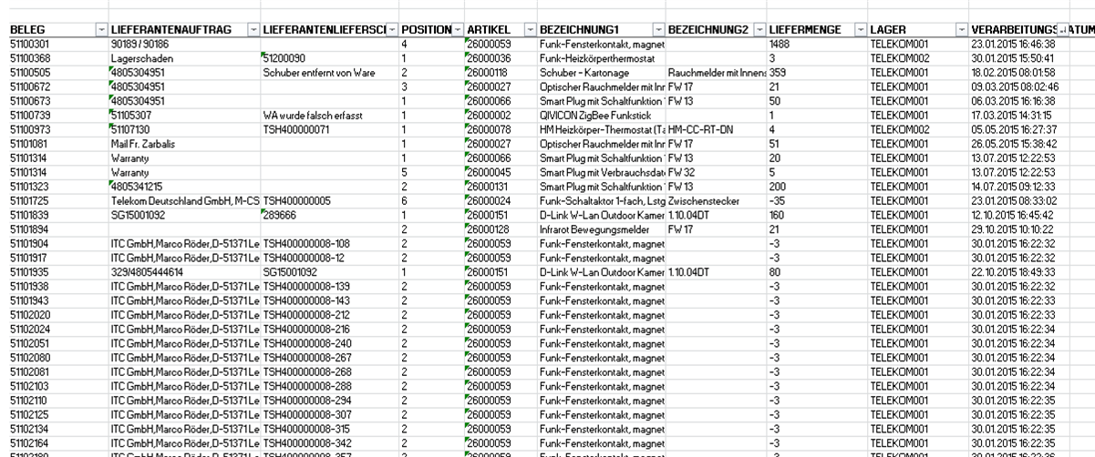 Datenseitiger Wareneingang