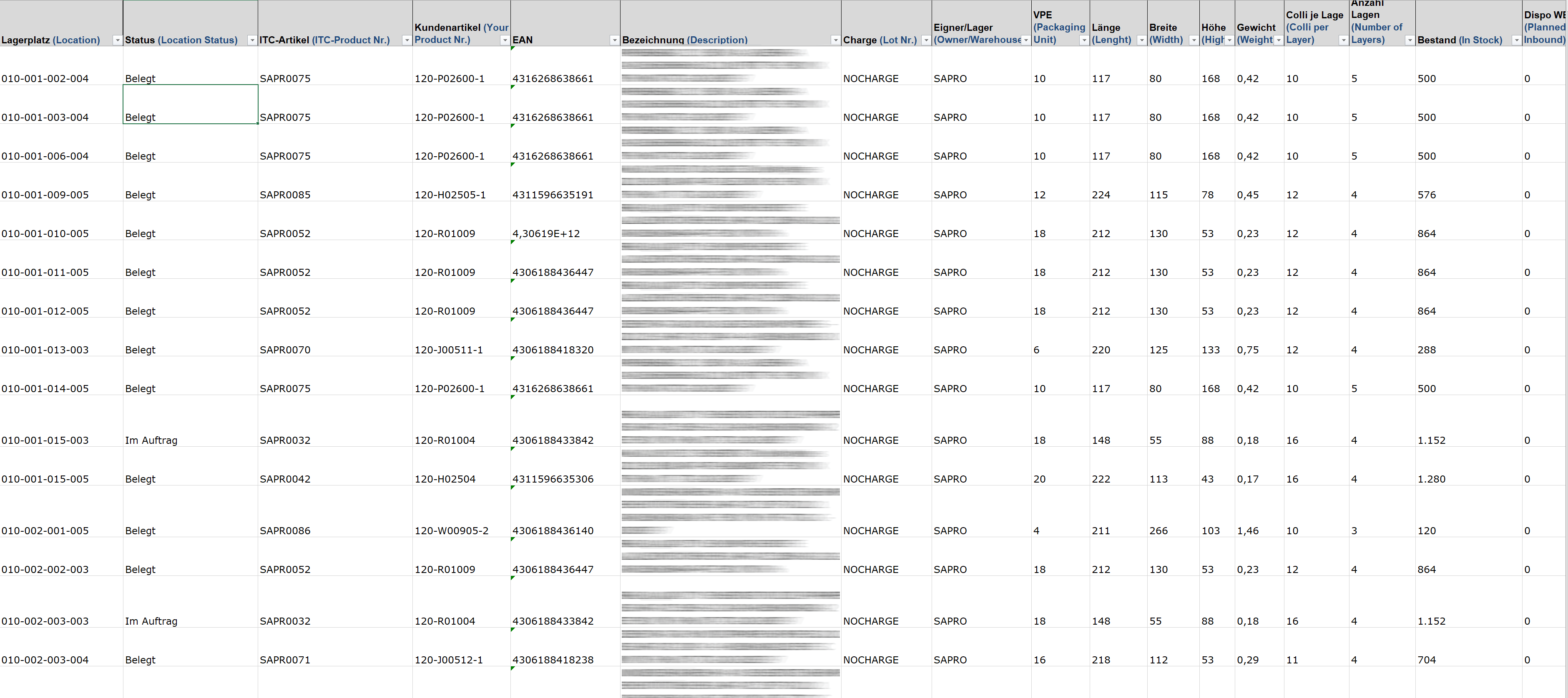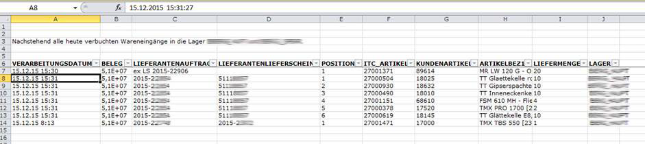 Die Bestände aller visuellen Lager werden zu festgelegten Zeiten via Schnittstelle oder als Excel/CSV an die definierten Empfänger übertragen. Alternativ können sie via ITC Weborder (Internet) eingesehen werden.