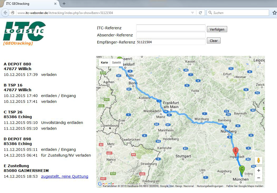 Visuelles Tracking inkl. Umschlagsplätzen und Auffälligkeitsmeldungen: