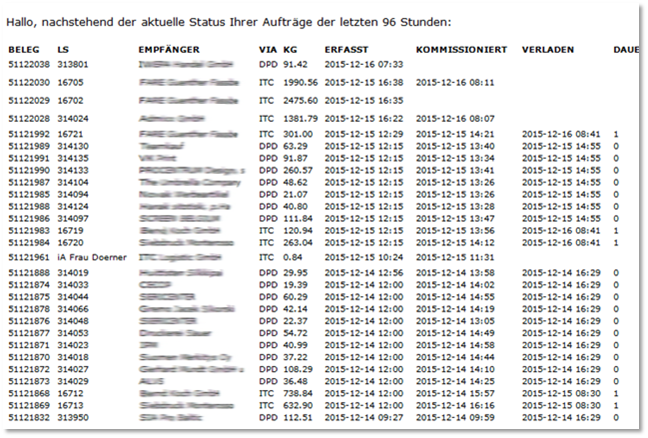 - Auf Wunsch werden alternativ alle relevanten Informationen per Mail, Excel, CSV an Kunden übertragen.
