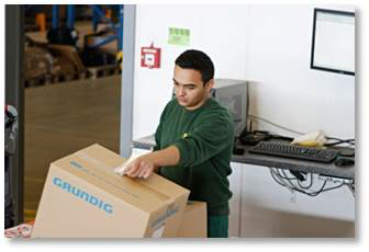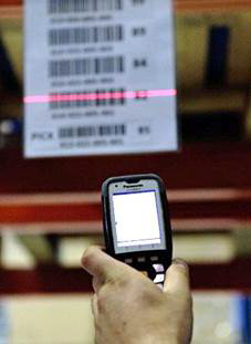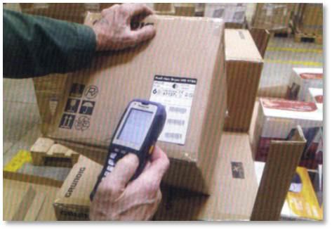 Die Wareneinnahme wird über das Anbringen eines Labels und die Scannung durch das Datenfunkterminal gesteuert.