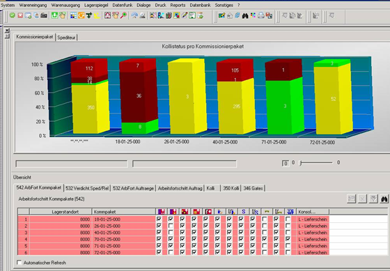 - Automatischer Kommissionierauftrag via Datenfunk unter Berücksichtigung der in der WWS getroffenen Auswahl bestimmter Chargen etc.
