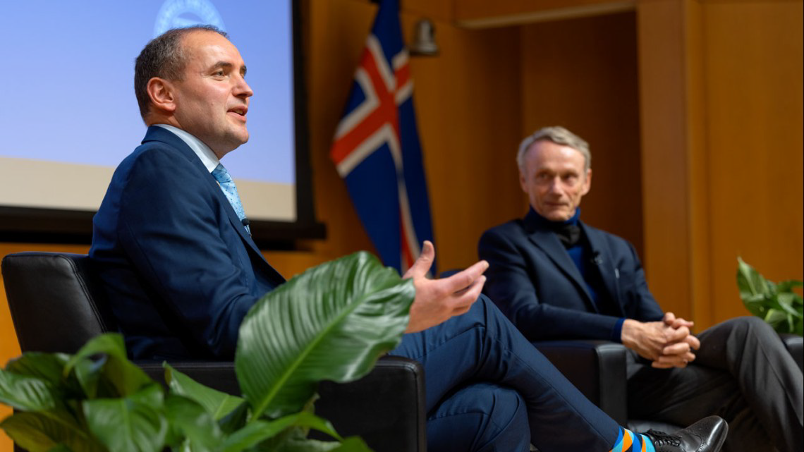 Jóhannesson discussed his country’s commitment to peace, diversity, and science-based climate solutions during a sold-out lecture in Klarman Hall, livestreamed to an audience of hundreds. The event was moderated by Peter Katzenstein (A&S).