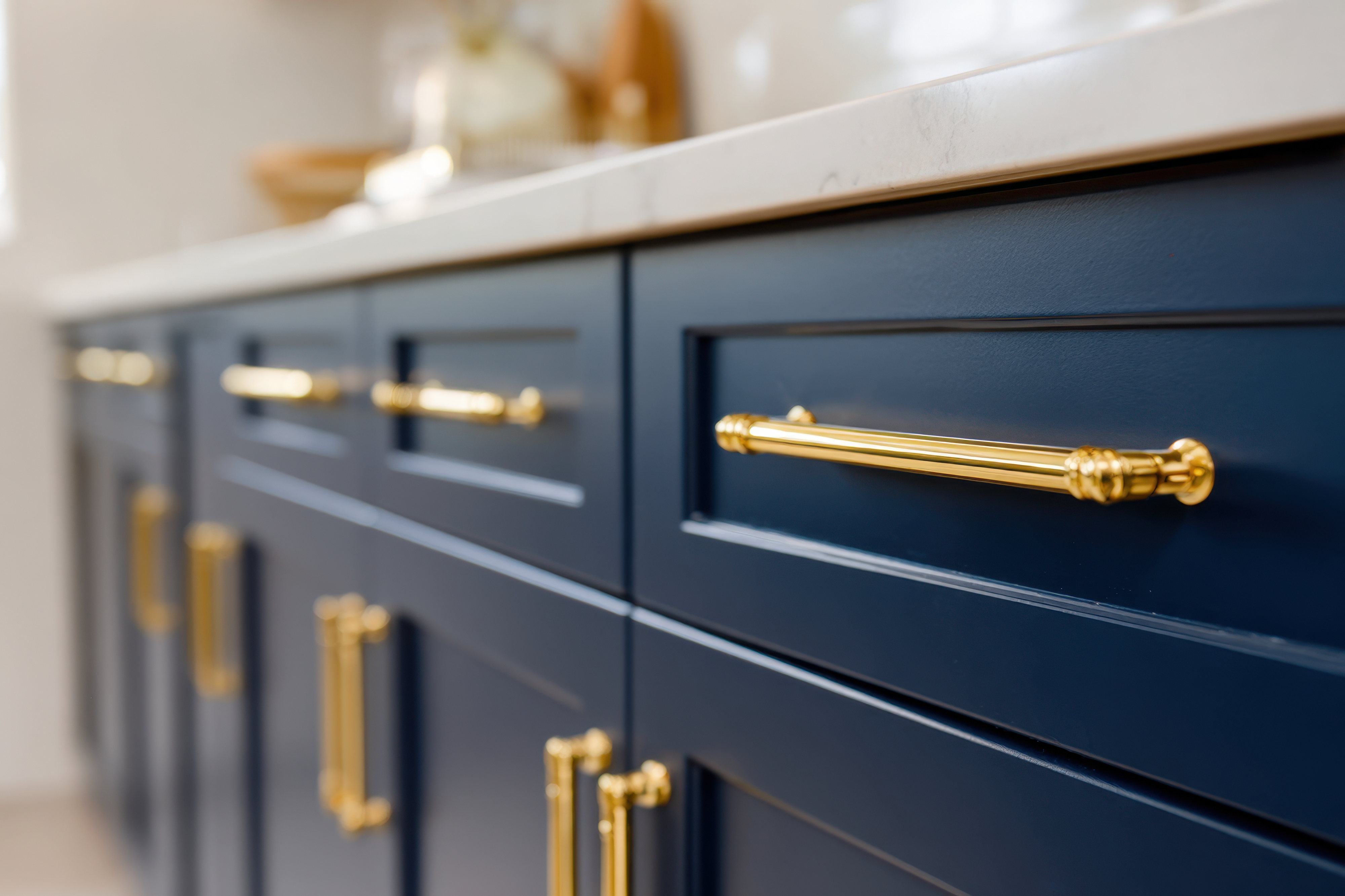 - Replace hardware on cabinets.