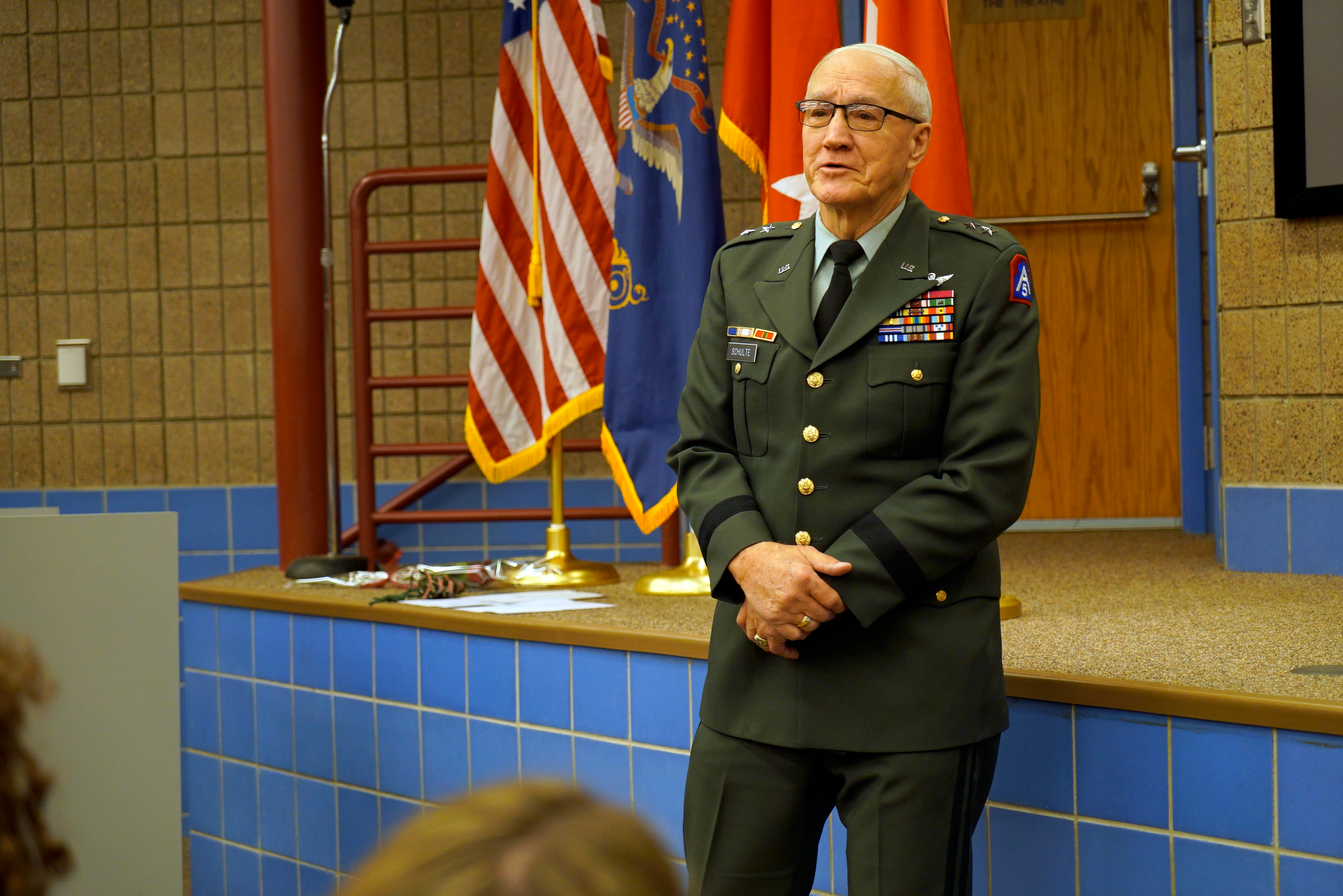 Retired Major General Bob Schulte renders remarks at Col. Warren Pauling's retirement ceremony, Raymond J. Bohn armory, Dec. 30, 2021.