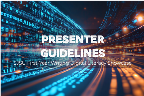 Although this page is called "Presenter Guidelines," you won't need to produce a slide deck or give a public speech. Instead, the SJSU First-Year Writing Digital Literacy Showcase is a “gallery walk.” Presenters sit with their projects, and attendees can go from table to table to learn about the different things students are working on. Below is what you need to know about being a presenter.