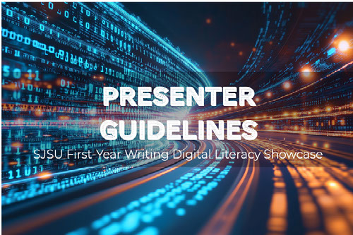Although this page is called "Presenter Guidelines," we don't expect participants to produce a slide deck or give a public speech or perform anything. Instead, the SJSU First-Year Writing Digital Literacy Showcase takes the form of a “gallery walk.” Presenters sit with their projects, and attendees can go from table to table to ask questions and learn about the different things students are working on. So by "presenter," we mean someone who is knowledgable about their own project, the process it took to get it into the shape it's in, and any future goals for development or revision.
