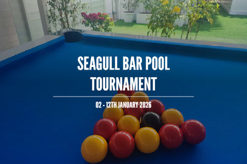 Pool Tournament - 12 January 2026 ENTRY - in by Sunday 11th January. DRAW - Monday 12th January. STARTS - After the draw televised on facebook at 19.00 LIVE. WHERE – All games played at the SEAGULL SPORTS BAR AND RESTAURANT. WHEN - The group games must be played by Monday 19th January. FINAL - Saturday 24th January - 20.00. HOW – Each player has given either a Line ID, telephone number or both, when the groups are decided (see the draw) each player should contact the other players in their group. If a player does not get a response after 3 attempts of trying to arrange a match, then a 3-0 result will be awarded. RULES - This tournament is designed so people can meet new people and socialize, so with this in mind we will only have a few rules during matches. 1. Nominate the black pocket. 2. Ball in hand foul. 3. You must hit a cushion (before or after the object ball) 4. Touching ball, you must play away. 5. Players must agree on the rules before the match starts. 6. We can referee if needed. 7. You can hit your ball onto your opponent’s ball and pot their ball without it being a foul. If your ball goes down at the same time, then you continue your go. 8. Winner can choose to break or not to break.