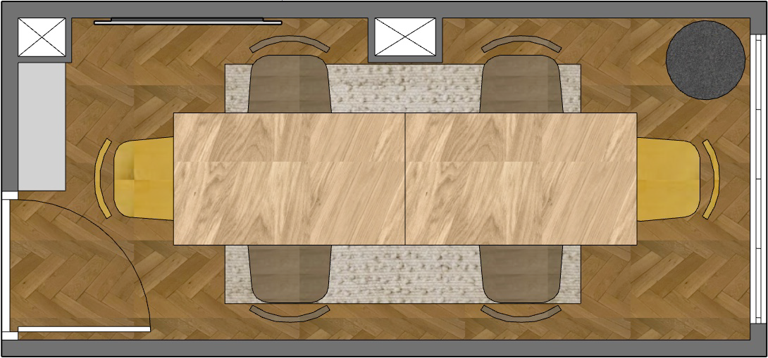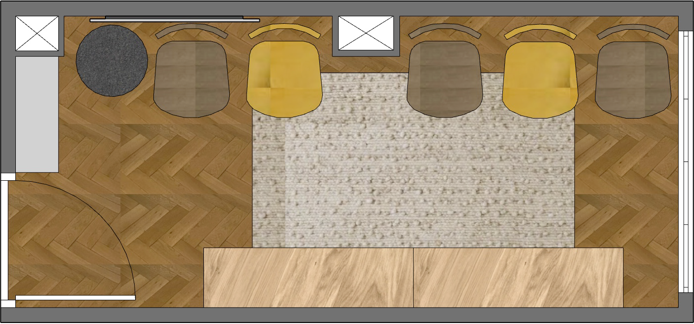 Existing chairs: keeping the existing chairs is a budget conscious decision. More than just budget-friendly, these chairs represent resourcefulness and also minimize waste, contributing to a sustainable, eco-friendly approach to design.