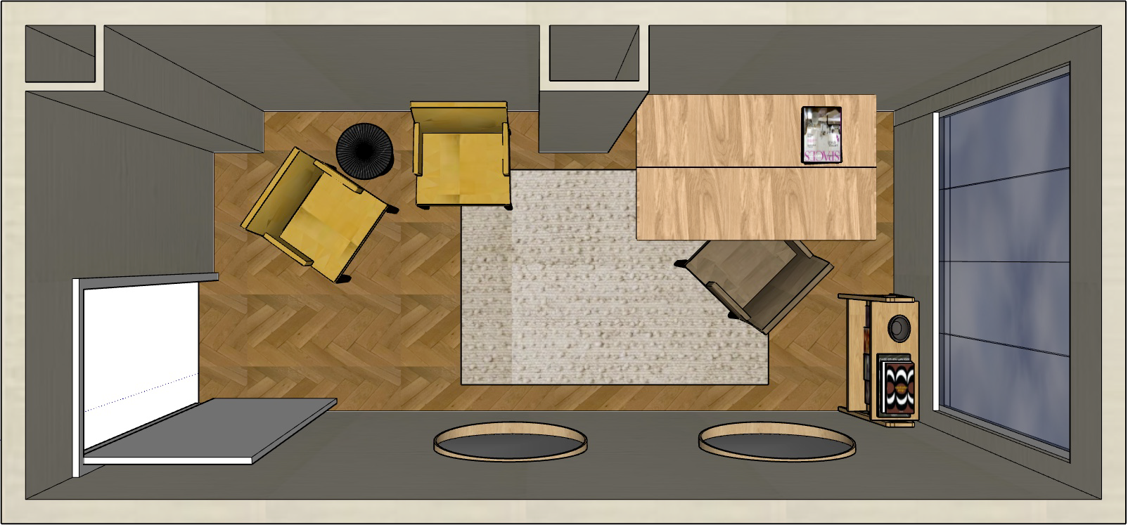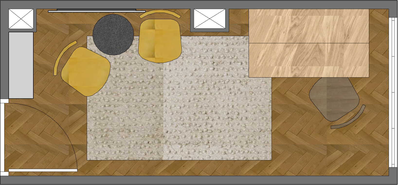 Mirrors (2), side table, book stand or book racks and rug: they harmonize with every configuration, maintaining their position yet adapting seamlessly to the evolving environment. The mirrors create an illusion of space, making the room look larger and more open. The side table, subtle but the indispensable addition, it provides a convenient surface for essentials. The book stand or book rack holds a curated selection of reading material and the rug ties the room together, defining the space and adding a warm touch.