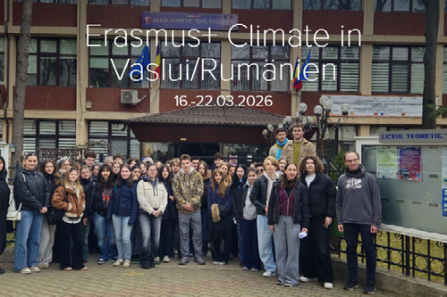 Dieses Treffen war das vierte und letzte Treffen unseres multilateralen Erasmus+ Projekts “Climate”. Gemeinsam mit unseren Partnern vom Lycée la Martinière Duchère (https://www.martiniere-duchere.fr/) aus Lyon in Frankreich und vom Gymnaziuim Jana Nerudy in Prag (www.gjn.cz) trafen wir uns im Liceul Teoretic "Emil Racovita" (https://lervs.ro/) in Vaslui in Rumänien. In Lyon hatten wir uns mit dem Zusammenhang zwischen Ernährung und Klima beschäftigt, in Frankfurt hatten wir den Einfluss des Klimawandels auf die Biodiversität beleuchtet und in Prag war der Schwerpunkt das Thema Mobilität gewesen. Die Woche in Valsui stand nun unter dem Motto “Green Energies”.