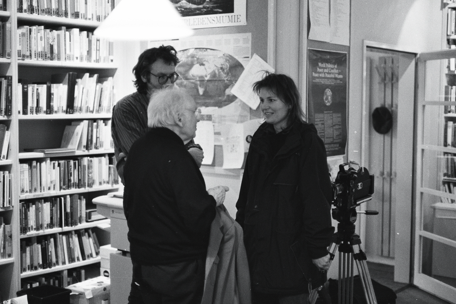 Dreh zu "Freiheit stirbt mit Sicherheit" in Frankfurt mit "SOS Rassismus". Mitte Tonmann Winfried Bettmer.