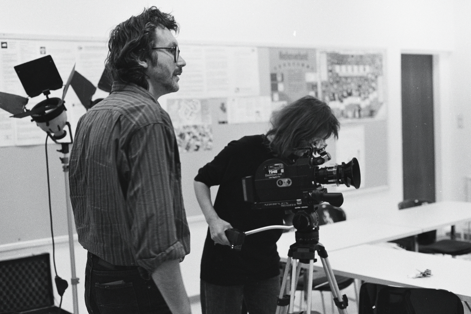 Kameramann Mirko Wache mit Assistent Cord Steinbach beim Dreh zu "Hafen-Elf"