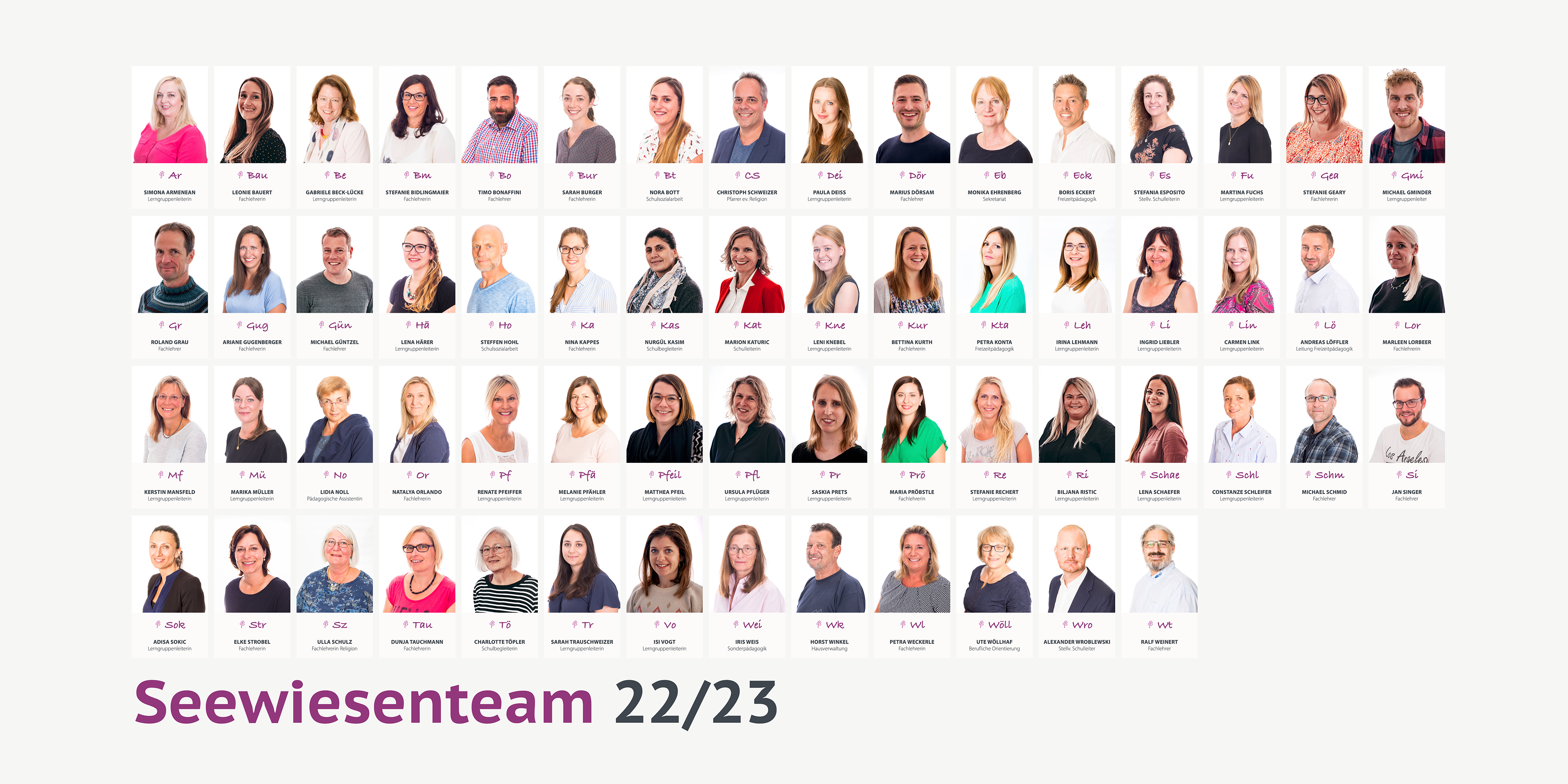 Die Seewiesenschule wird in diesem Schuljahr von 680 Schülerinnen und Schülern besucht. Ein 70-köpfiges Team bestehend aus Lehrkräften aller Schularten und vielen weiteren Mitarbeitern arbeitet täglich daran, den Seewiesenkindern eine schöne und erfolgreiche Schulzeit zu ermöglichen.