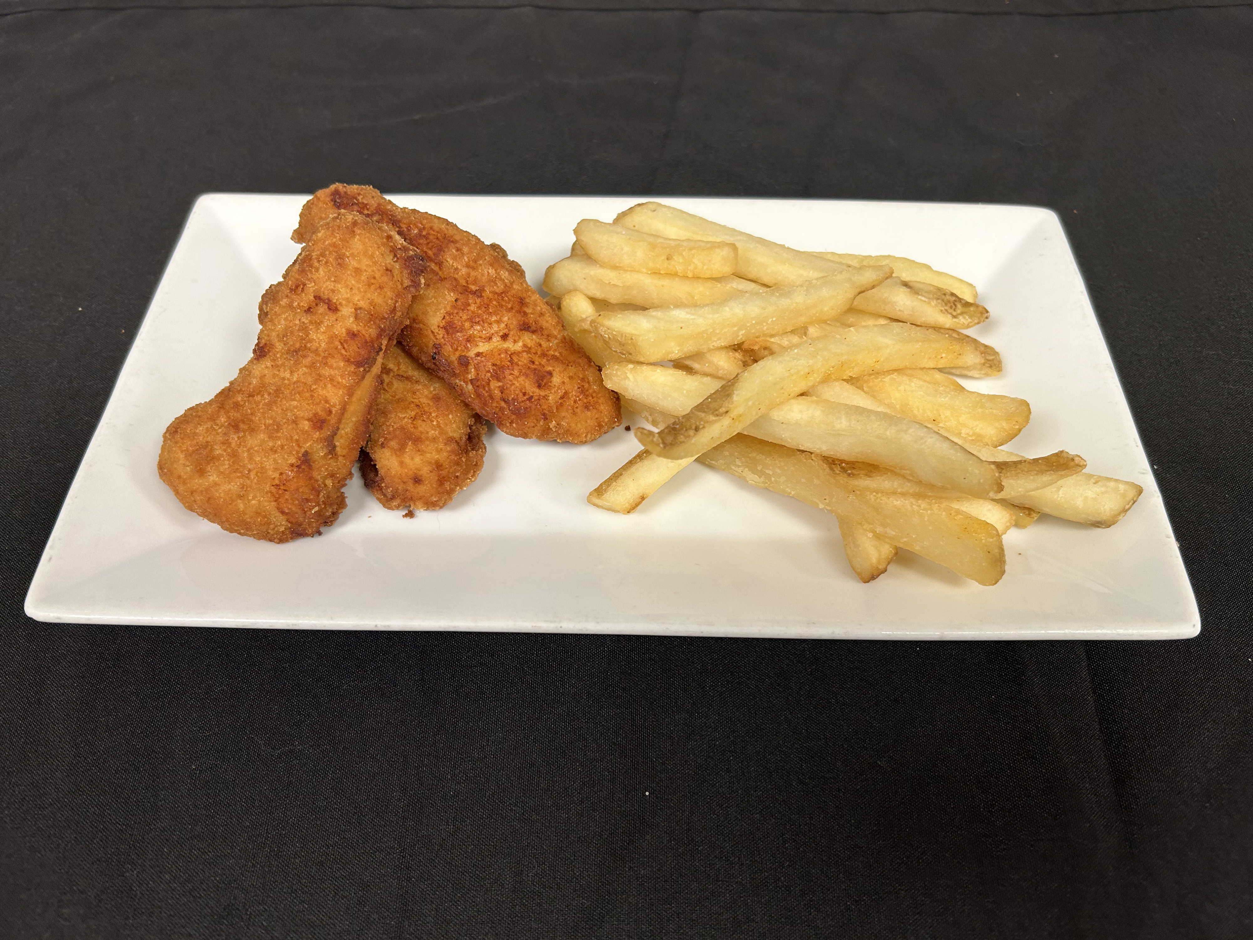 CHICKEN TENDERS Three chicken tenders with choice of ranch or barbeque sauce, and a side of pub fries. | 8.95