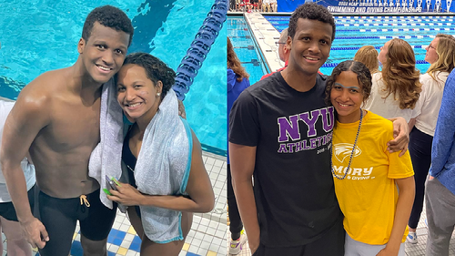 The siblings did intersect once at the UAA Swimming & Diving Championships hosted by Emory. “It was fun. I got a lot of comments that Jada swims like me. It was really cool seeing her in the environment I had been in for three years. I did get a couple of dirty looks when I was standing with the Emory folks when Jada was swimming the mile,” he joked. “It was special for our family as our parents and grandfather were there.”