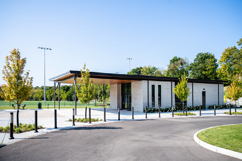 The redesigned park balances recreation, community gathering spaces and natural beauty. The expansion added two acres of land, improving pedestrian safety and traffic flow while seamlessly connecting the park to the surrounding neighborhood. Sports and recreation upgrades include redesigned field space with both synthetic and natural turf, enhanced drainage, two dedicated pickleball courts, and six multi-use courts for tennis and other activities. A new event lawn and a four-season community room provide flexible spaces for civic and social events, while a designated farmers market and event vendor area further enriches community engagement. The park’s custom play area is now expanded and ADA-friendly, ensuring accessibility for all children. A new veterans memorial offers a meaningful place for reflection, and a new south restroom along the multi-use trail adds convenience.
