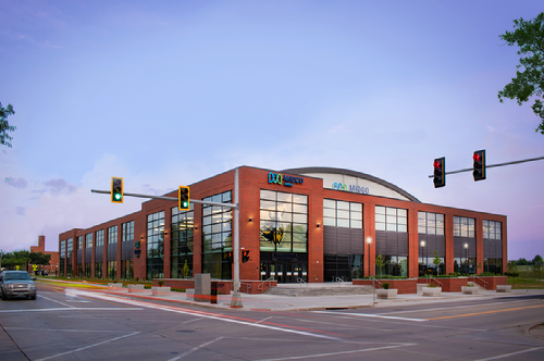 Beyond hockey, Midco Arena is a multi-use hub for Augustana Athletics, including a new athletics administration and coaching office suite, an athletics department strength and conditioning center, a sports medicine facility, and an equitably designed team suite for women’s soccer. Midco Arena bridges campus administration and athletics boundaries, bringing a main entry and external event plaza that provides pre- and post-game event space for both campus and community. Located at the heart of campus, Midco Arena is an impressive gateway to the university, elevating the fan experience while enhancing athletes’ performance, nutrition and overall wellbeing.