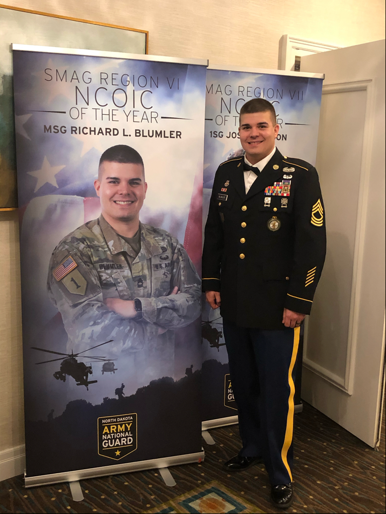 Master Sgt. Richard Blumler was awarded the Director's Strength Maintenance Expert 7 of the Year, which is awarded to the top recruiting and retention non-commissioned officer in a supervisory position in each of the recruiting and retention area of commands. Additionally, Blumer was also named as the national recruiting non-commissioned officer in charge of the Year and is the only N.D. Army National Guard soldier to compete and win at the national level. Sgt. 1st Class Erik Wall received the N.D. Army National Guard Director's 54, an award given to the top recruiter in each of the 50 states, the District of Columbia, and three U.S. Territories.