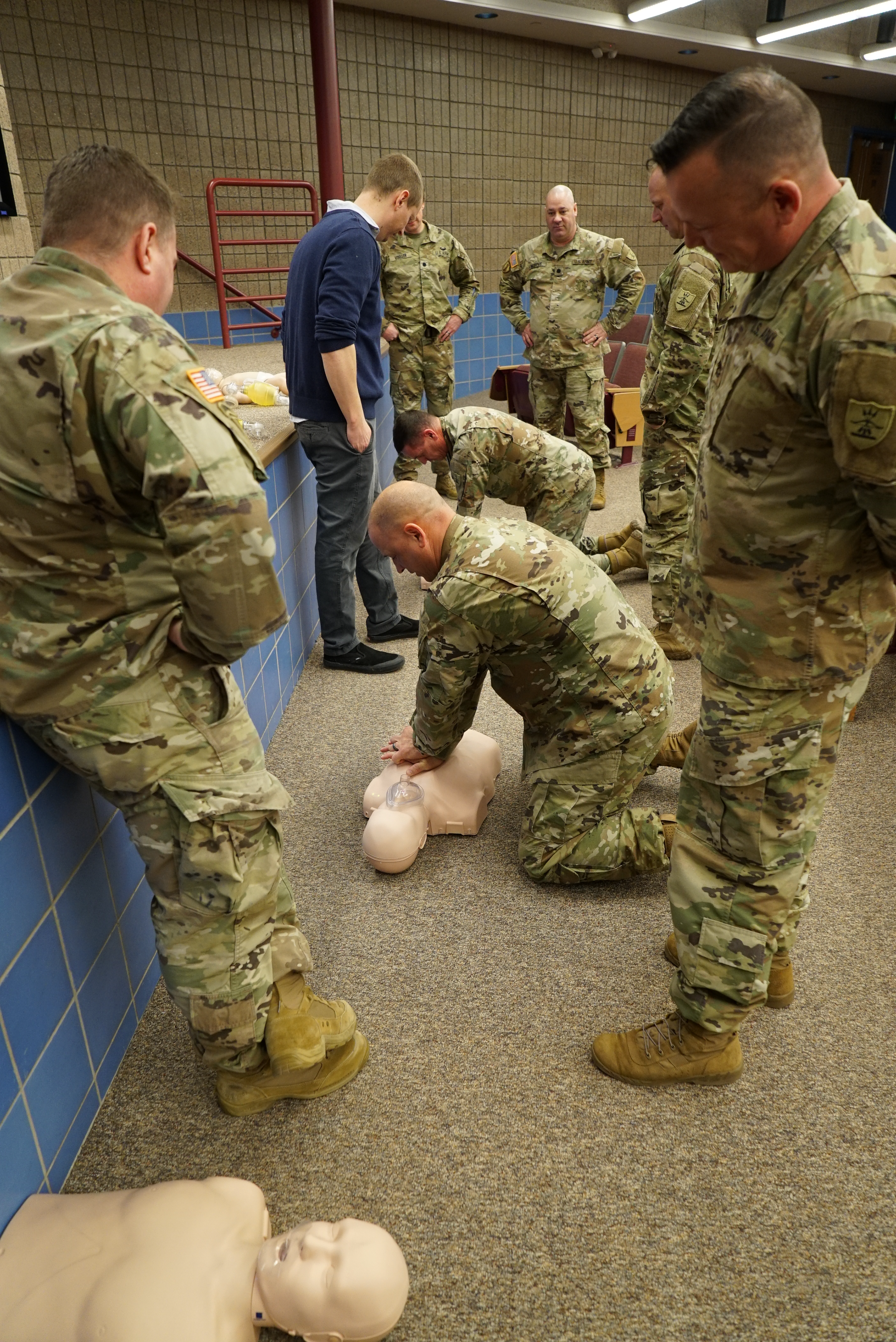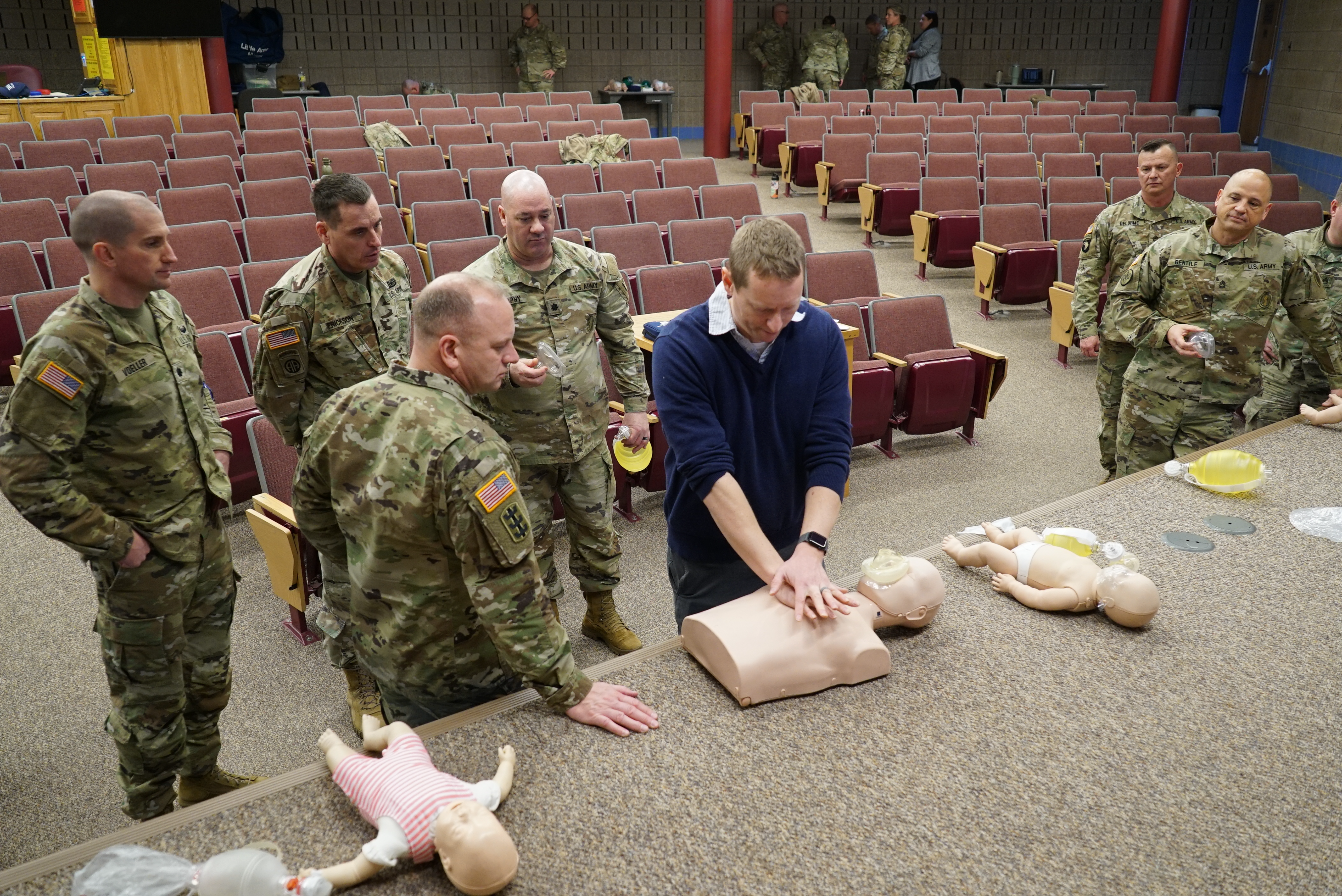Members of the N.D. National Guard participated in a cardiopulmonary resuscitation (CPR) and automated external defibrillator (AED) class at the Raymond J. Bohn armory, Bismarck, N.D., Feb. 22, 2023. (National Guard story and photos by Sgt. 1st Class Charles Highland, N.D. National Guard Public Affairs Office)