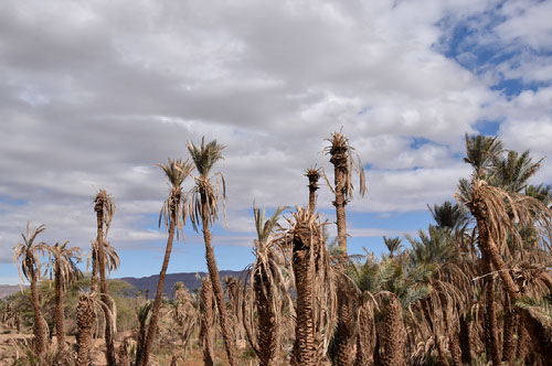 Nous quittons Zagora pour Agdz par la vallée du Drâa, anciennement très verdoyante, hélas après 7 ans de sécheresse la palmeraie souffre.