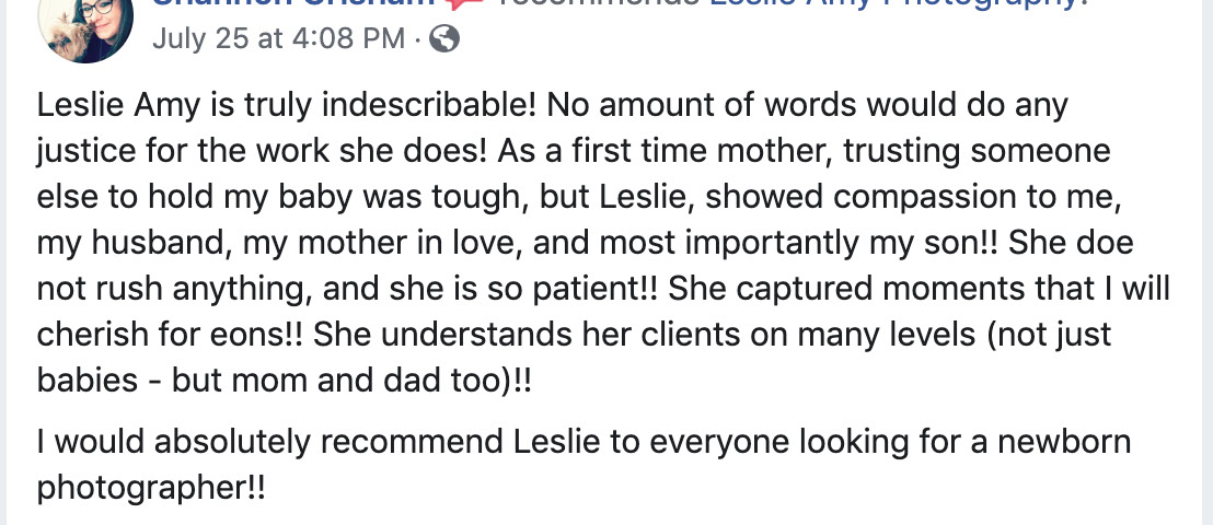 "We had the best time at our son's newborn session! I have admired her photography for a year so when I became pregnant, I knew exactly who I wanted taking my son's photos. The session was a dream." -Shelby E, Greenbrier, Arkansas