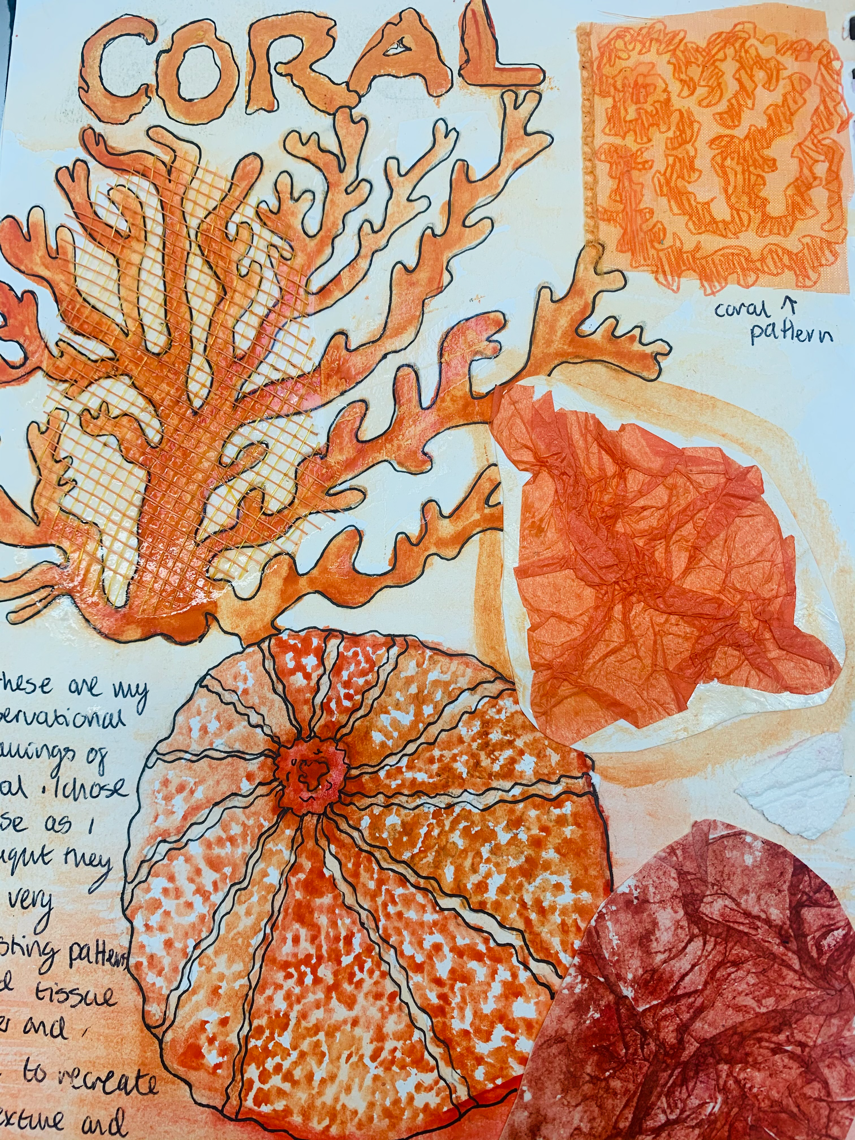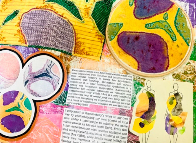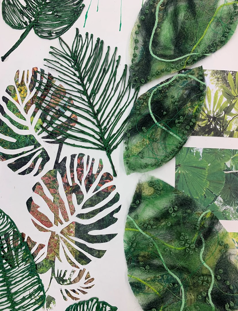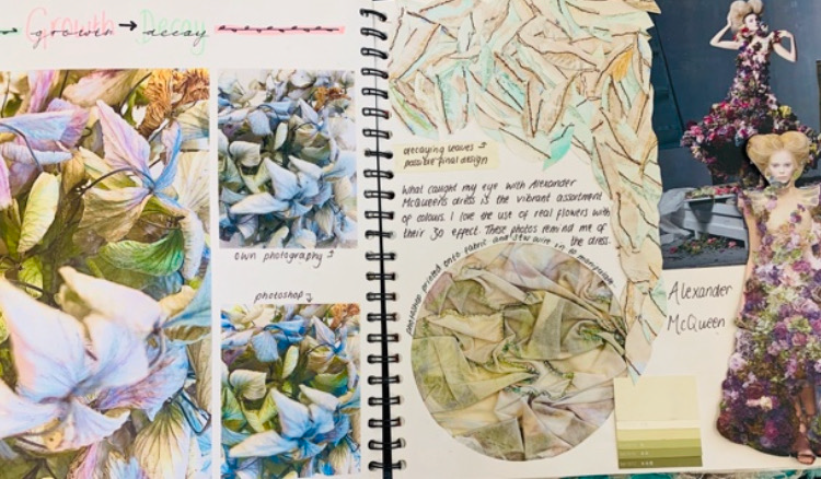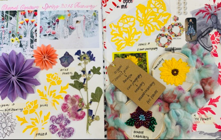 Students develop their ideas using primary sources of inspiration from many sources, experiment and sample new techniques and record their ideas and processes during the course with photography, sketching, drawing, painting and sampling.