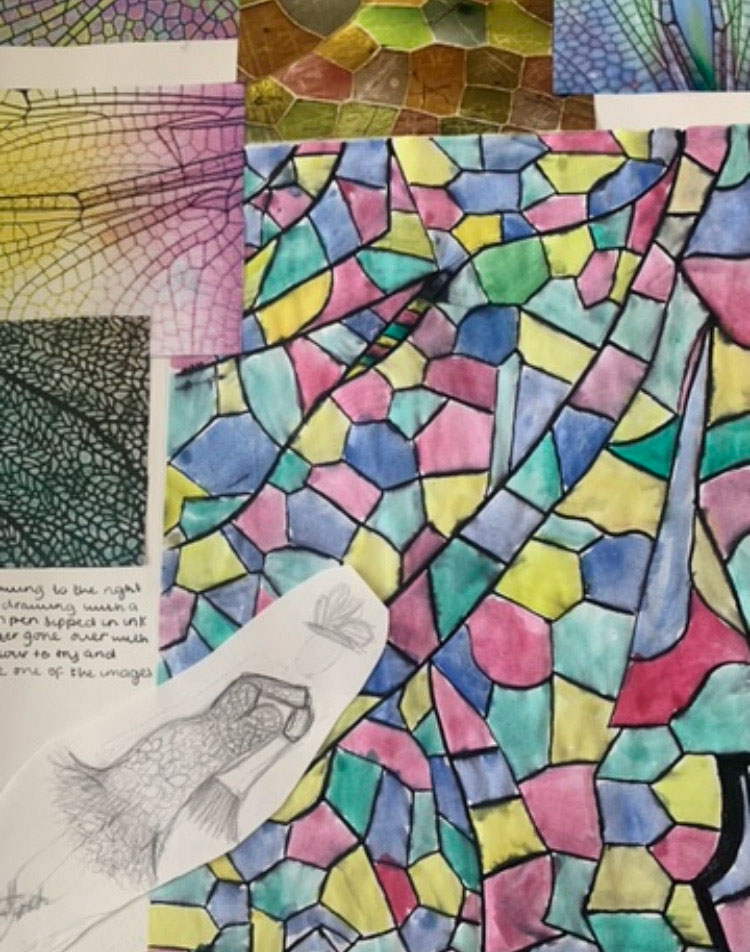 Students will cover different projects per year, which will include a combination of research, recording from observation such as drawing & photography, artist study, design development and final pieces. The projects enable students to work within the parameters of a given topic and set of criteria but also to develop an individual style and/or direction.