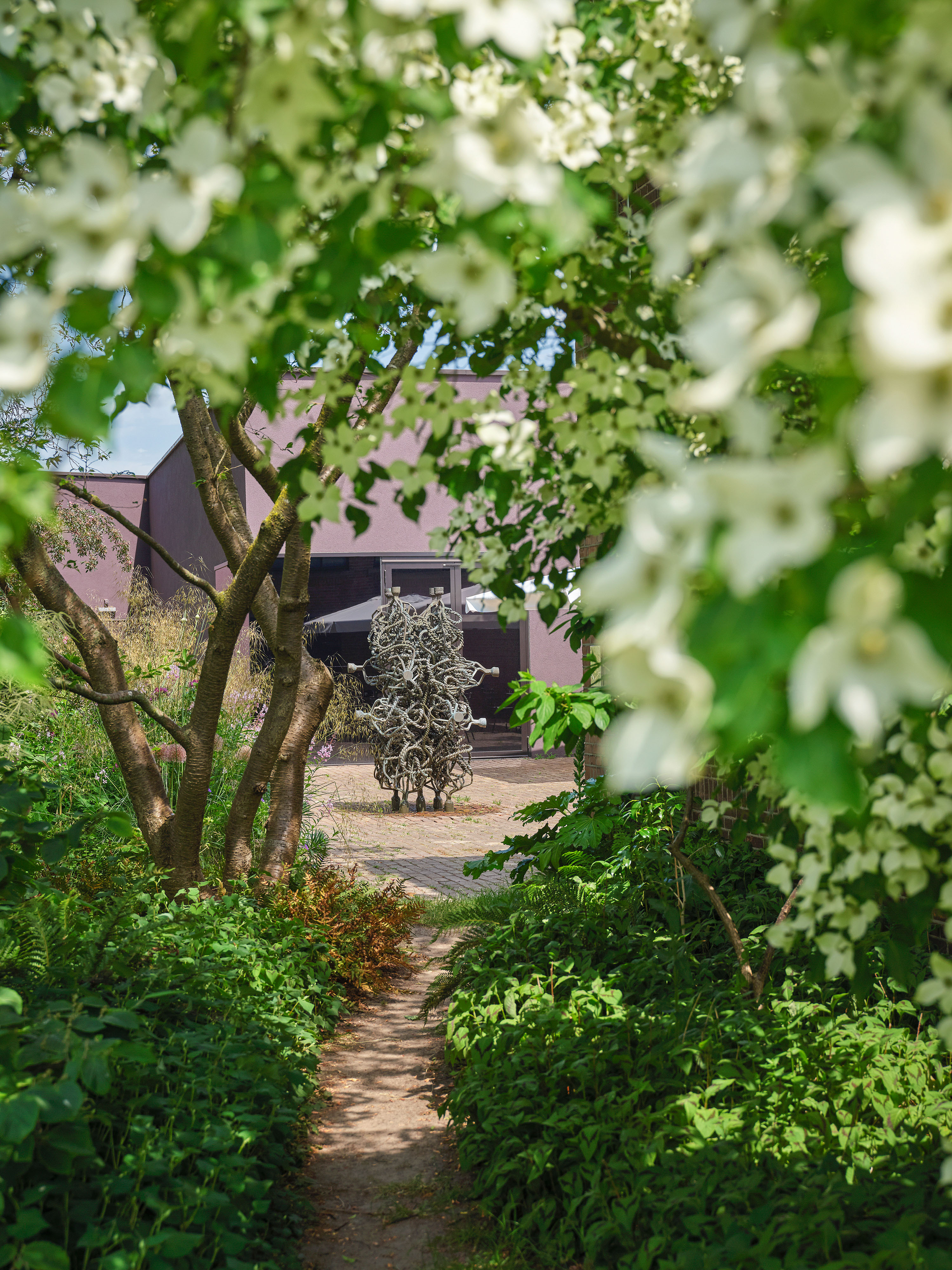 Ook de groene schatkamer van De Pont ondervindt de gevolgen van klimaatverandering. Niet verwonderlijk dat Kazumi hier actief op inspeelt, door bijvoorbeeld soorten te zaaien die tijdens droge periodes in staat zijn zichzelf te bedruipen zonder al te veel afhankelijk te zijn van sproeiwater. Ook zijn er talloze bodembedekkers in de tuin te ontdekken die de grond vochtig en luchtig houden. Niet alleen goed voor de planten, maar ook voor dieren en de algehele biodiversiteit.