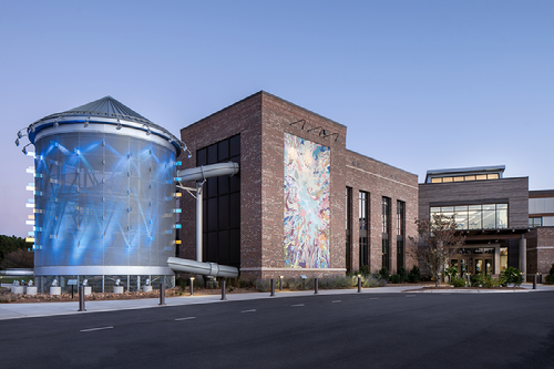 During the feasibility phase, the architectural team provided multiple design options to facilitate a decision regarding the preferred siting of the building within the 41-acre site. Ultimately, the client preferred to place the building close to the highway for greater visibility. Glass facades with exciting views into the aquatics portion of the facility draw the interest of passersby and greet patrons as they enter the site.