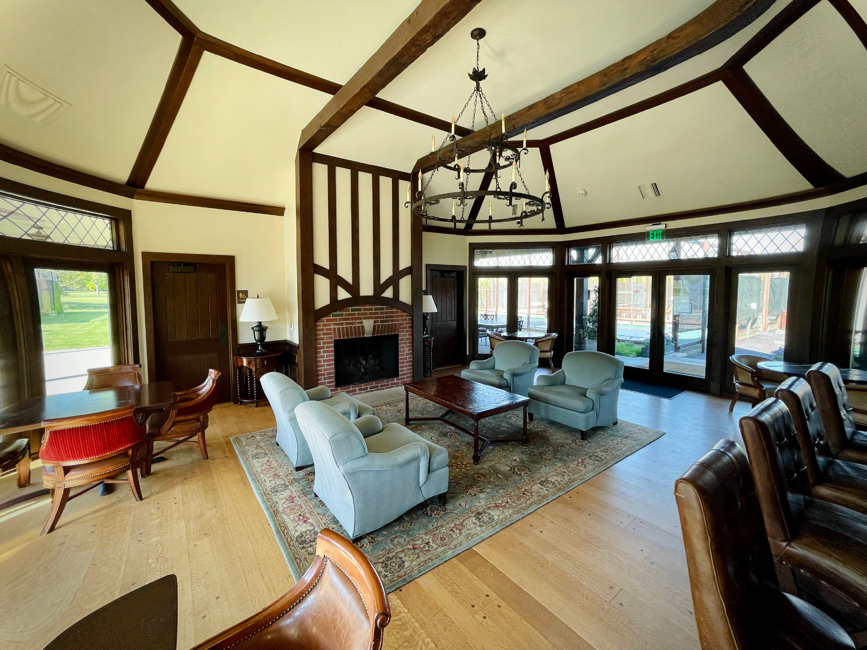 Country Club of Detroit resides in a 1927 Smith, Hinchman & Grylls (today’s Smith Group) Tudor revival masterpiece that includes some of the best finishes of the Arts and Crafts era. Resplendent murals are featured in both clubhouse dining rooms, paling in comparison only to the Zodiac murals seen in the grand entryway, masterfully painted by Frederick Dana Marsh.