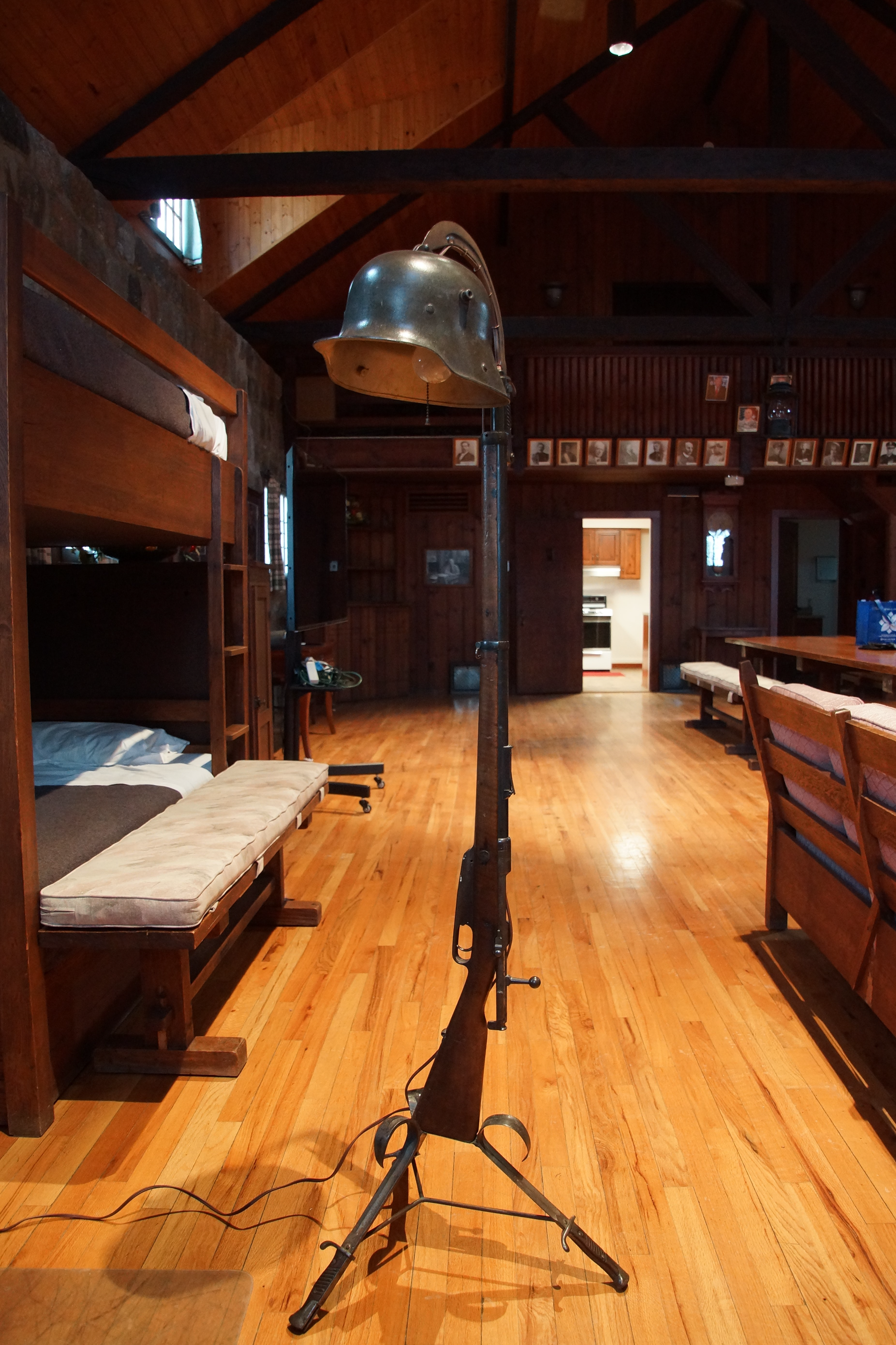 One of the more interesting artifacts inside the historic Edwards House at Camp Grafton Training Site near Devils Lake, N.D., is a lamp made from WWII war trophies. The lamp consists of a Model 1889 German Mauser, bayonets, and a German Stalhelm (steel helmet). These trophies were likely brought back by a Soldier from either the N.D. National Guard's 188th or 957th Field Artillery Battalions. These units landed on Utah Beach just after D-Day, and are credited with firing over 162,300 Howitzer (155mm) rounds helping the Allies defeat the Nazis. (Story and photo by retired Lt. Col. (ret) Shirley J. Olgeirson, N.D. National Guard Historian)