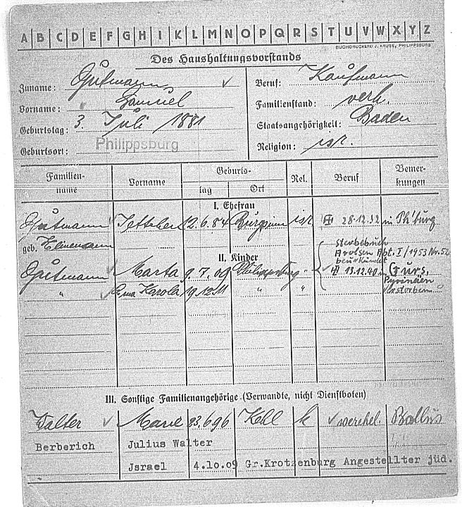 Die Familie Gutmann (Samuel Gutmann, seine Tochter Marta, seine Tochter Erna Berberich und deren Ehemann Walter Julius Berberich, wurden - wie die meisten badischen Juden - 1940 in das Lager Gurs/Südfrankreich deportiert.