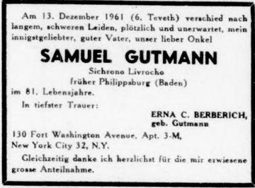 1961 ist Samuel Gutmann in New York im Alter von 81 Jahren verstorben.