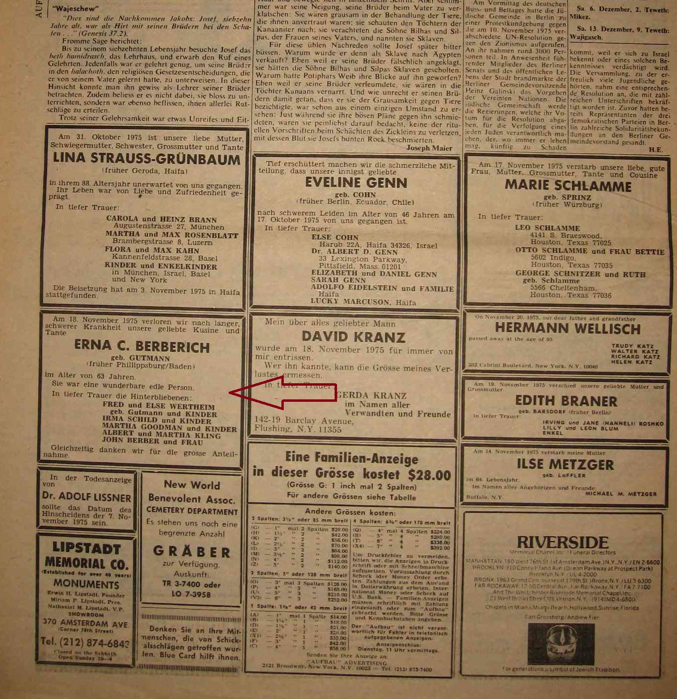 Tochter Erna verstarb 1975.