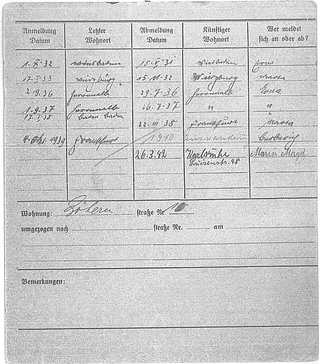 Ein nachträglicher Eintrag auf dieser Meldekarte gibt einen Hinweis auf das Schicksal von Marta Gutmann; sie ist am 13.12.40 im Lager Gurs/Pyrenäen verstorben. Am 22. Oktober 1940 wurde fast die gesamt jüdische Bevölkerung Juden aus Baden, der Pfalz und dem Saarland in das Lager Gurs (Südfrankreich) deportiert. Die genannten Länder sollten als erste im Reich "judenfrei" werden.