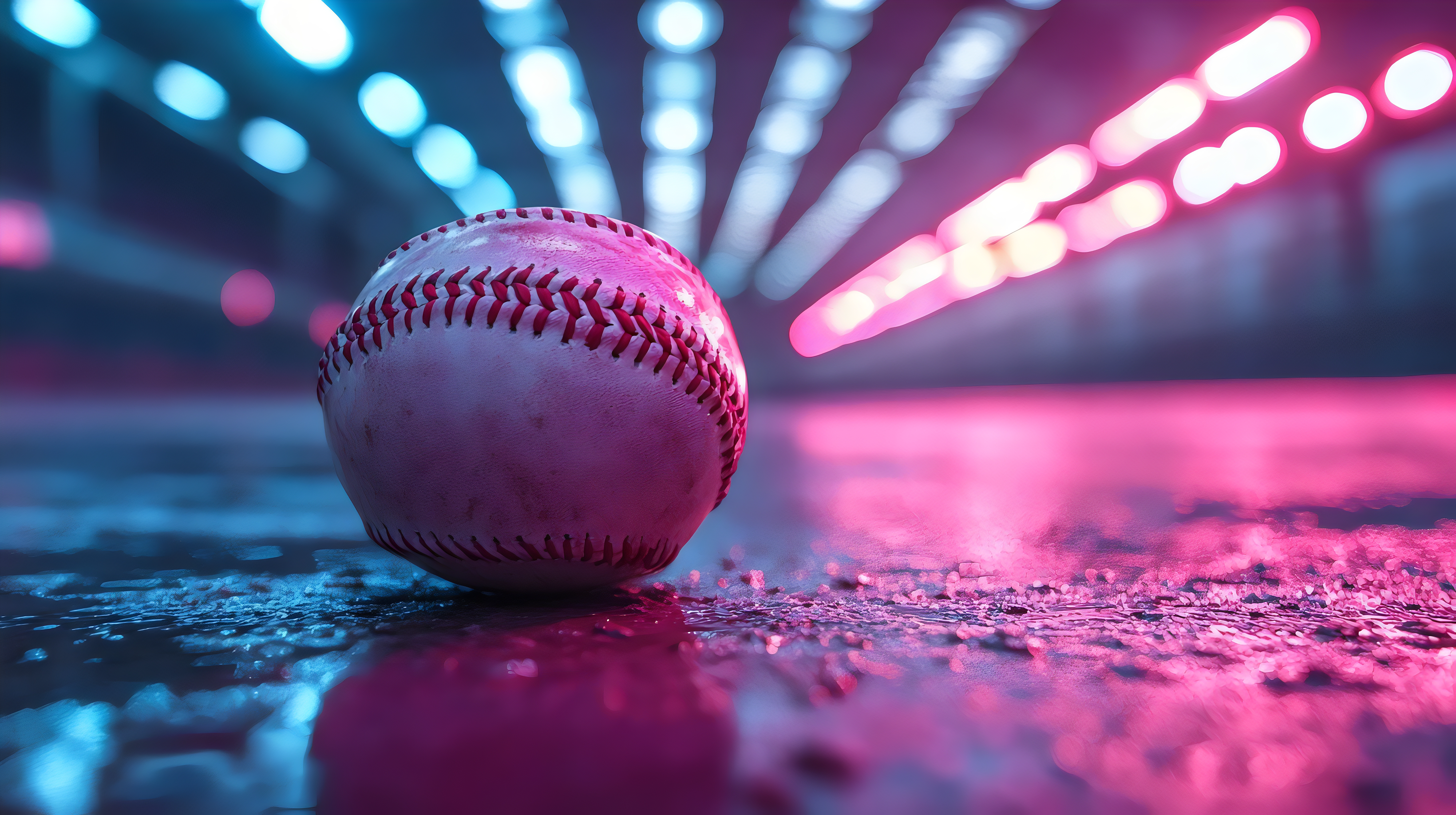 Created with images by Linus - "A baseball is sitting on the ground in front of a bright light" • William - "Blue sign that says 42"