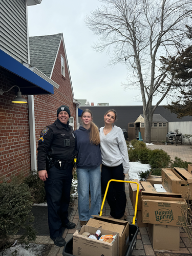 Nelly Kaminski ’26 and Ava Carter ’26 were among some of the Staples students helping out. Part of their help involved unloading boxes of food that were brought over by the Westport Police Department, filled with food and hygiene supplies. Kaminski and Carter were there representing Staples’ Service League of Girls (SLOGS).