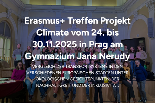 Gastgeber war unsere Partnerschule, das Gymnaziuim Jana Nerudy in Prag. (www.gjn.cz) Außer uns waren noch zwei weitere Partnerschulen des Projekts Climate mit dabei, das Lycée la Martinière Duchère (https://www.martiniere-duchere.fr/) aus Lyon in Frankreich und das Liceul Teoretic "Emil Racovita" (https://lervs.ro/) in Vaslui in Rumänien.