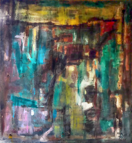 Inizio anni '60 dello scorso secolo, sperimenta l'uso di colori ad olio, sparsi a larghe macchie informi e libere, impiegando superfici lignee su cui รจ applicato un fondo composto da sabbia di mare sulle quali interviene con pennellate quasi istintive.